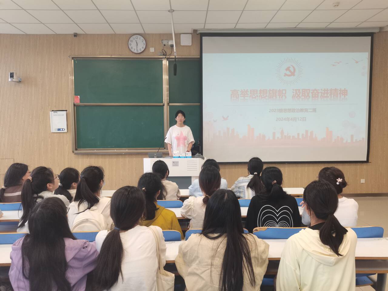 为更好发挥思想统一的基础性作用,提振广大团员和青年的信心与决心,4月12日上午,beat365在线唯一官网2023级思想政治教育二班在社科楼515教室召开“高举思想旗帜,汲取奋进力量”主题团课。本次团课由团支书王慜初主持,全体二班同学参加。
