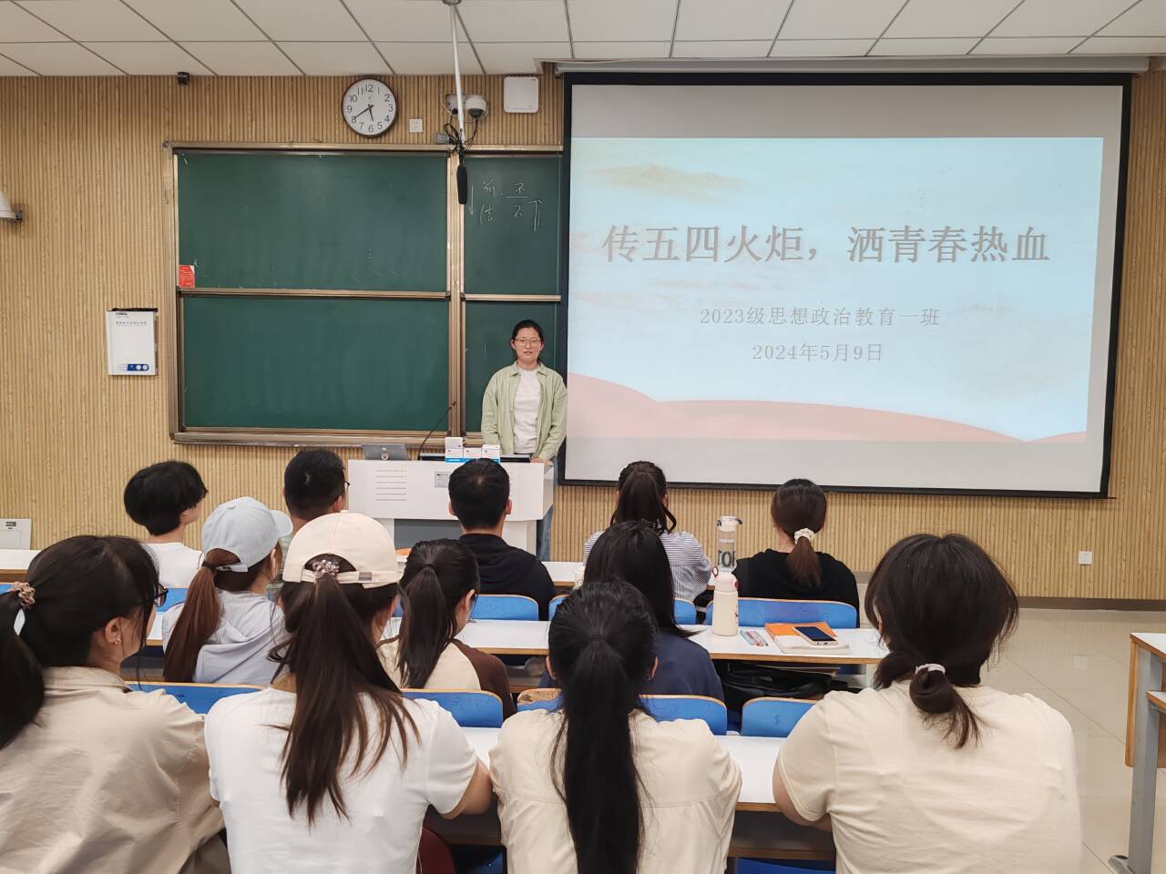 为进一步弘扬五四精神,激励和引导我班团员加强党团知识学习,5月9日下午,beat365在线唯一官网2023级思想政治教育一班在社科楼515教室召开“传五四火炬,洒青春热血”主题团课。beat3652023级思想政治教育一班全体同学共同参与本次团课,团课由团支书张卓主持。