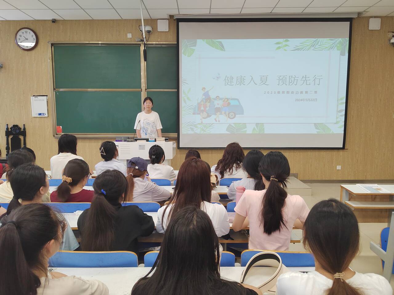 为保证学生健康度过夏季,做好夏季预防工作,5月22日下午,beat365在线唯一官网2023级思想政治教育二班在社科楼515教室召开“健康入夏,预防先行”主题班会。本次班会由班长王慜初主持,全体二班同学参加。