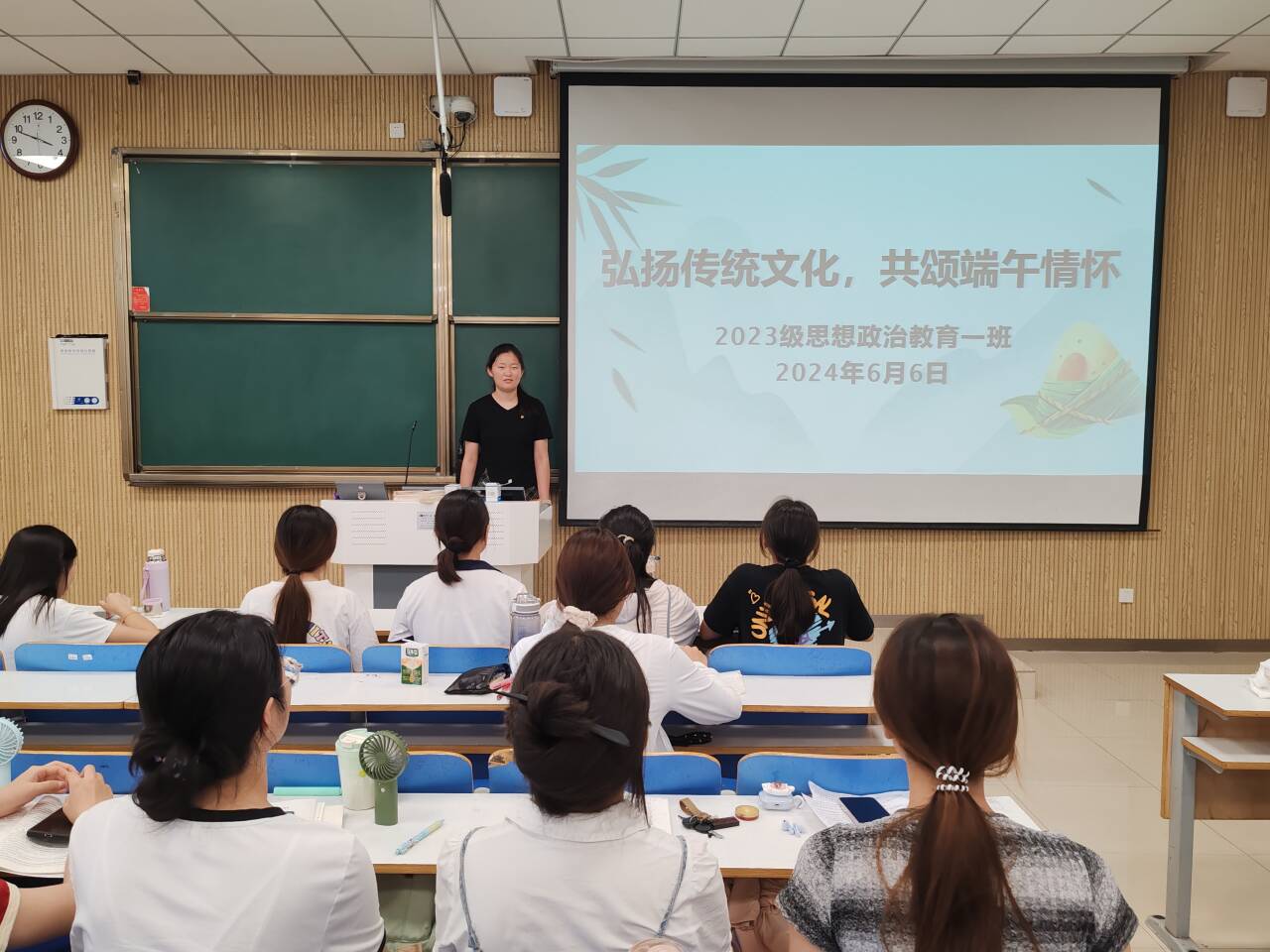 为促使我班学子了解端午节,更好地继承和弘扬中华优秀传统文化,6月6日下午,beat365在线唯一官网2023级思想政治教育一班在社科楼515教室召开“弘扬传统文化,共颂端午情怀”主题班会。beat3652023级思想政治教育一班全体同学共同参与本次班会,班会由团支书张卓主持。