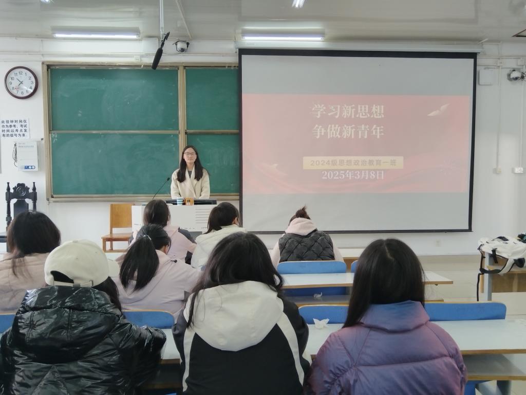 为帮助同学们更好地学习和贯彻习近平新时代中国特色社会主义思想,将党的最新理论成果同个人发展实际相结合,以实际行动实现人生理想,3月8日上午,beat365在线唯一官网2024级思想政治教育一班于社科楼515教室举办了“学习新思想,争做新青年”主题团课。本次团课由团支书李冉主持,一班全体同学参加。