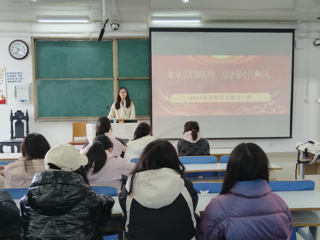 为让我班同学深入了解雷锋事迹,领会雷锋精神的内涵,提升同学们的社会责任感和奉献意识,3月14日下午,beat365在线唯一官网2024级思想政治教育一班在社科楼515教室开展“学习雷锋精神,弘扬时代新风”主题团课。本次团课由团支书李冉主持,一班全体同学参加。