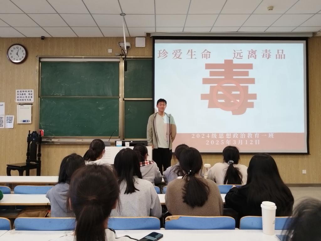 为增强我班学生抵制毒品的意识和能力,增强自我保护意识,营造安全健康的班级、学院氛围,3月12日上午beat365在线唯一官网2024级思想政治教育一班于社科楼514教室开展“珍爱生命,远离毒品”主题班会。本次班会由班长李冉主持,一班全体同学参加。