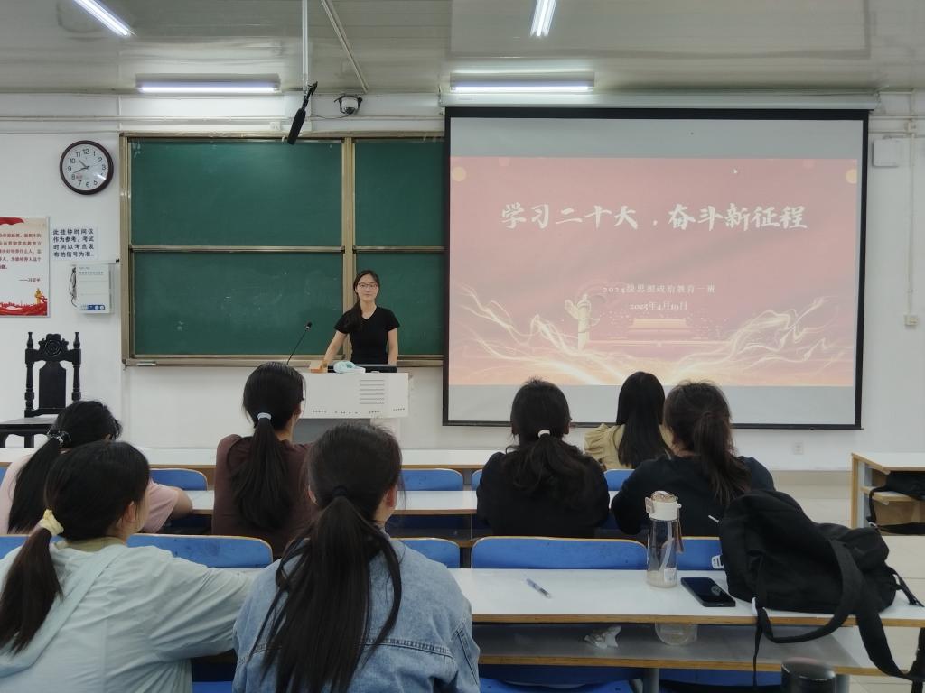 为深入学习贯彻党的二十大精神,引导我班学生将思想和行动统一到大会精神上,为全面推进国家建设贡献力量,4月17日下午,beat365在线唯一官网2024级思想政治教育一班于社科楼515教室开展“学习二十大,奋斗新征程”主题团课。本次团课由团支书李冉主持,一班全体同学参加。