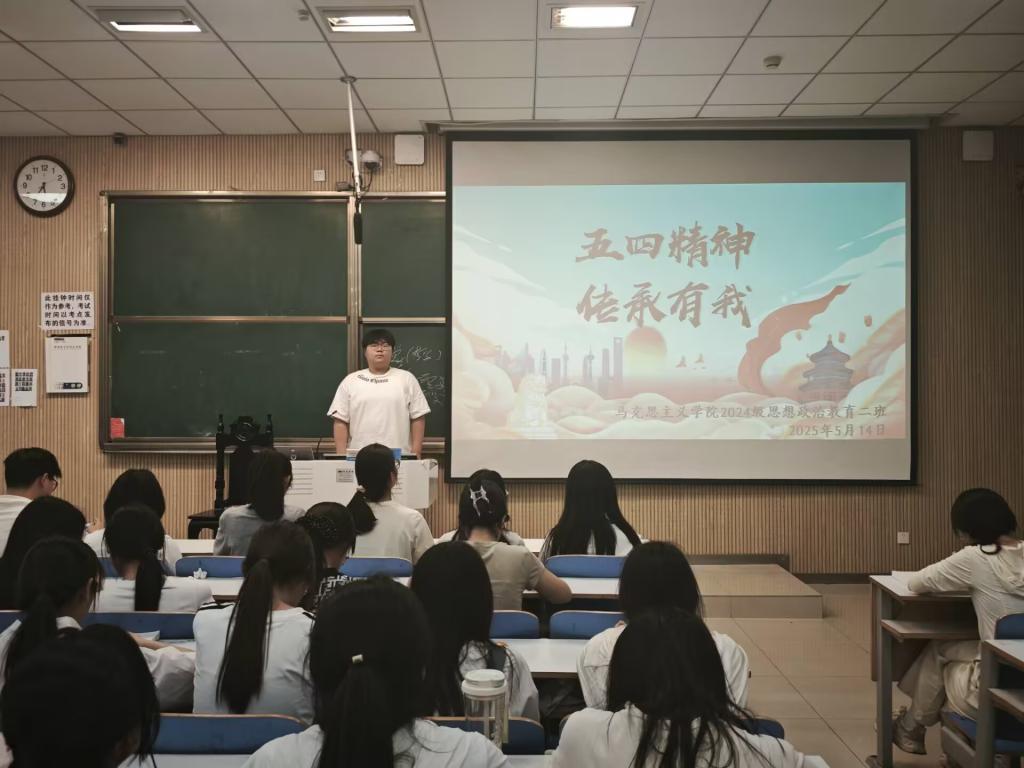 为深入学习贯彻五四精神,激励青年学生继承和发扬爱国、进步、民主、科学的优良传统,5月14日下午,beat365在线唯一官网2024级思想政治教育二班在社科楼515教室开展了“五四精神,继承有我”主题团课。本次班会由团支书王志颖主持,二班全体同学共同参与。
