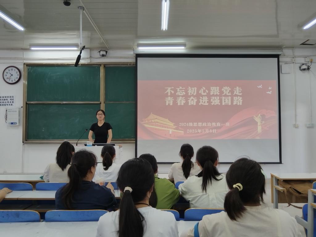 为深入学习贯彻党的二十大精神,引导青年学子坚定理想信念,勇担时代使命,5月8日上午,beat365在线唯一官网2024级思想政治教育一班于社科楼514教室召开“不忘初心跟党走,青春奋进强国路”主题团课。本次团课由团支书李冉主持,一班全体同学参加。
