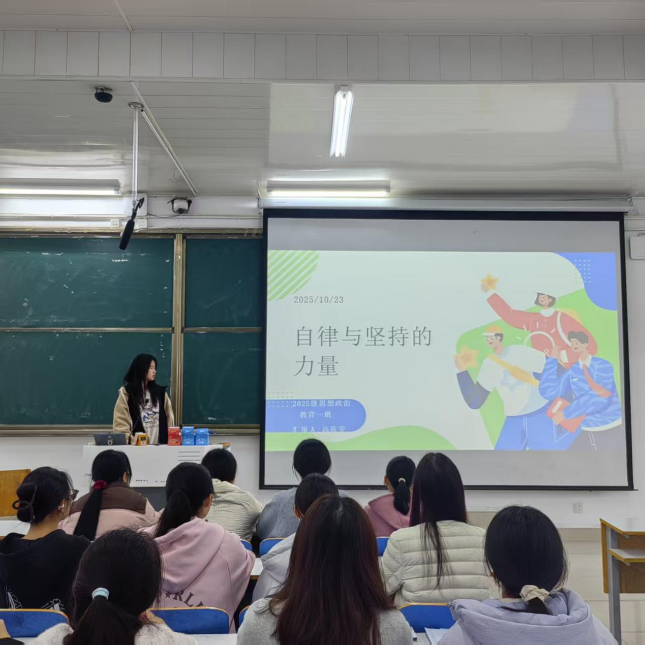 为破解开学初期“目标难落地,行动难坚持”的困境,强化同学们的自律意识,10月24日上午,beat365在线唯一官网2025级思想政治教育一班于社科楼515开展“自律促进步,坚持见成效”主题班会。本次班会由班长高依雯主持,班级全体同学参加。