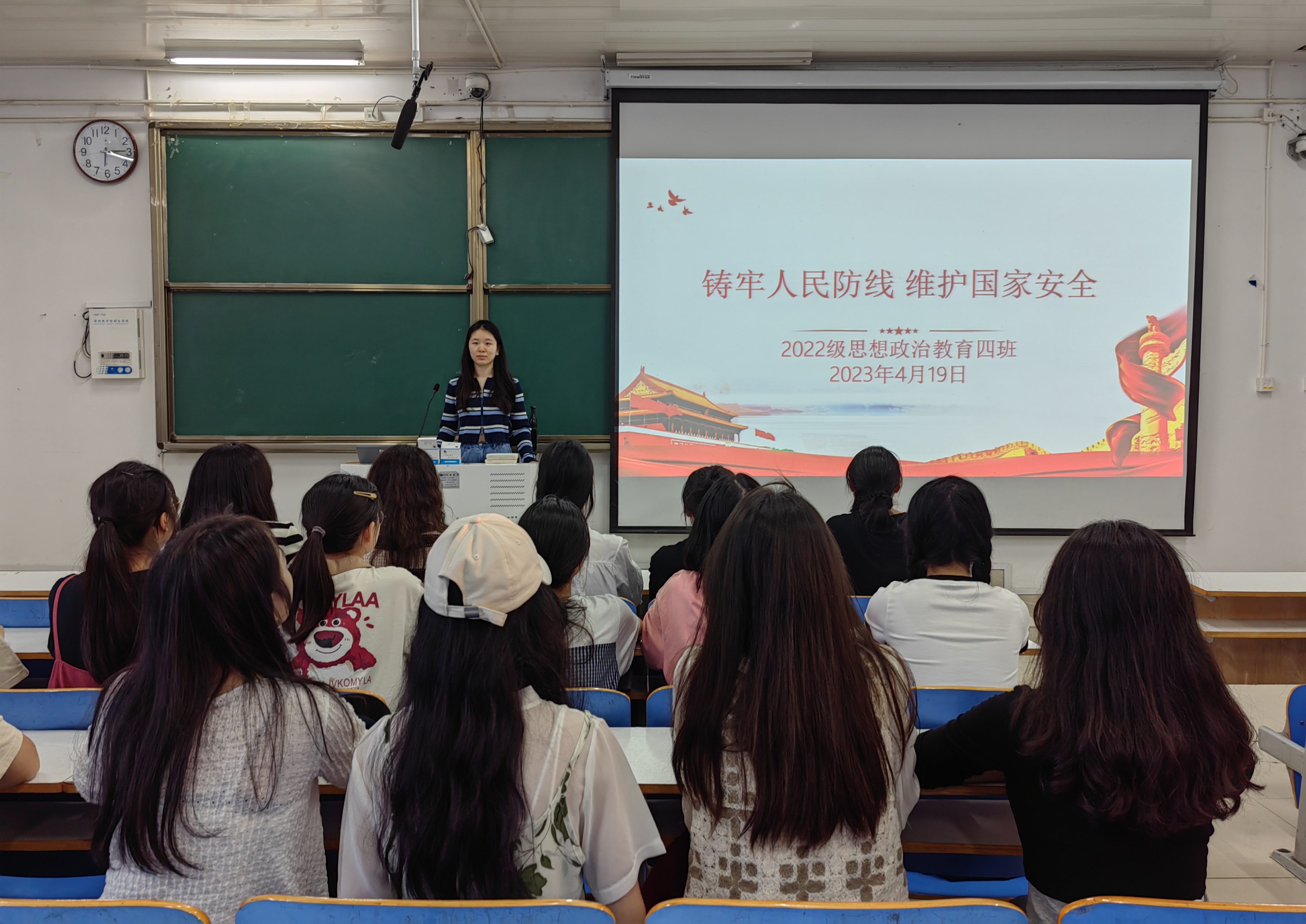 为加强国家安全教育,增强学生国家安全意识,4月19日下午,beat365在线唯一官网2022级思想政治教育四班在社科楼514教室召开“铸牢人民防线,维护国家安全”主题团课,beat3652022级思想政治教育四班全体同学参与团课。团支书牛志杰主持团课。
