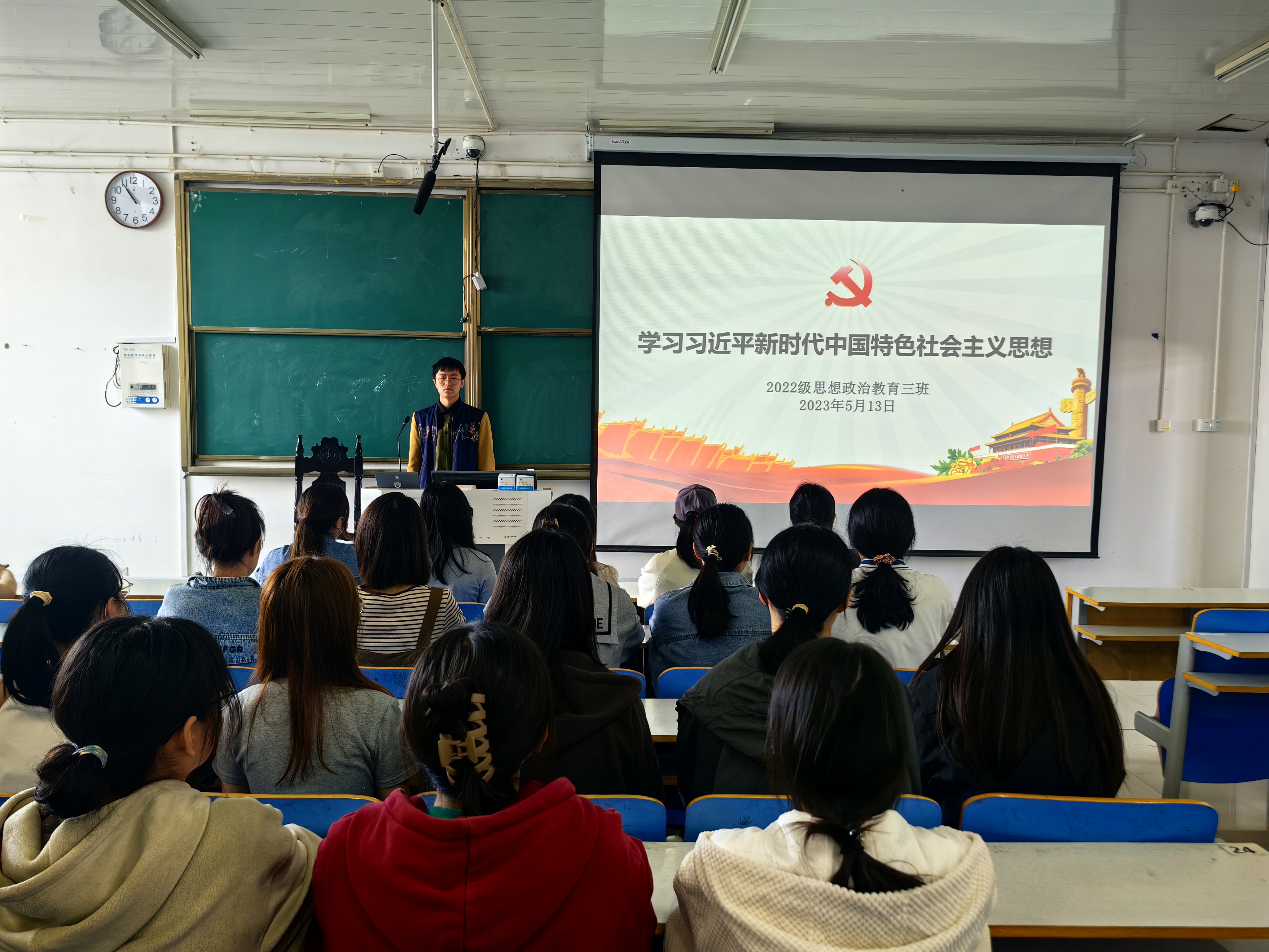 5月13日下午,beat365在线唯一官网2022级思想政治教育三班在社科楼515教室召开学习习近平新时代中国特色社会主义思想主题团课。beat3652022级思想政治教育三班全体成员共同参加此次团课。团课由团支书余浩洋主持。
