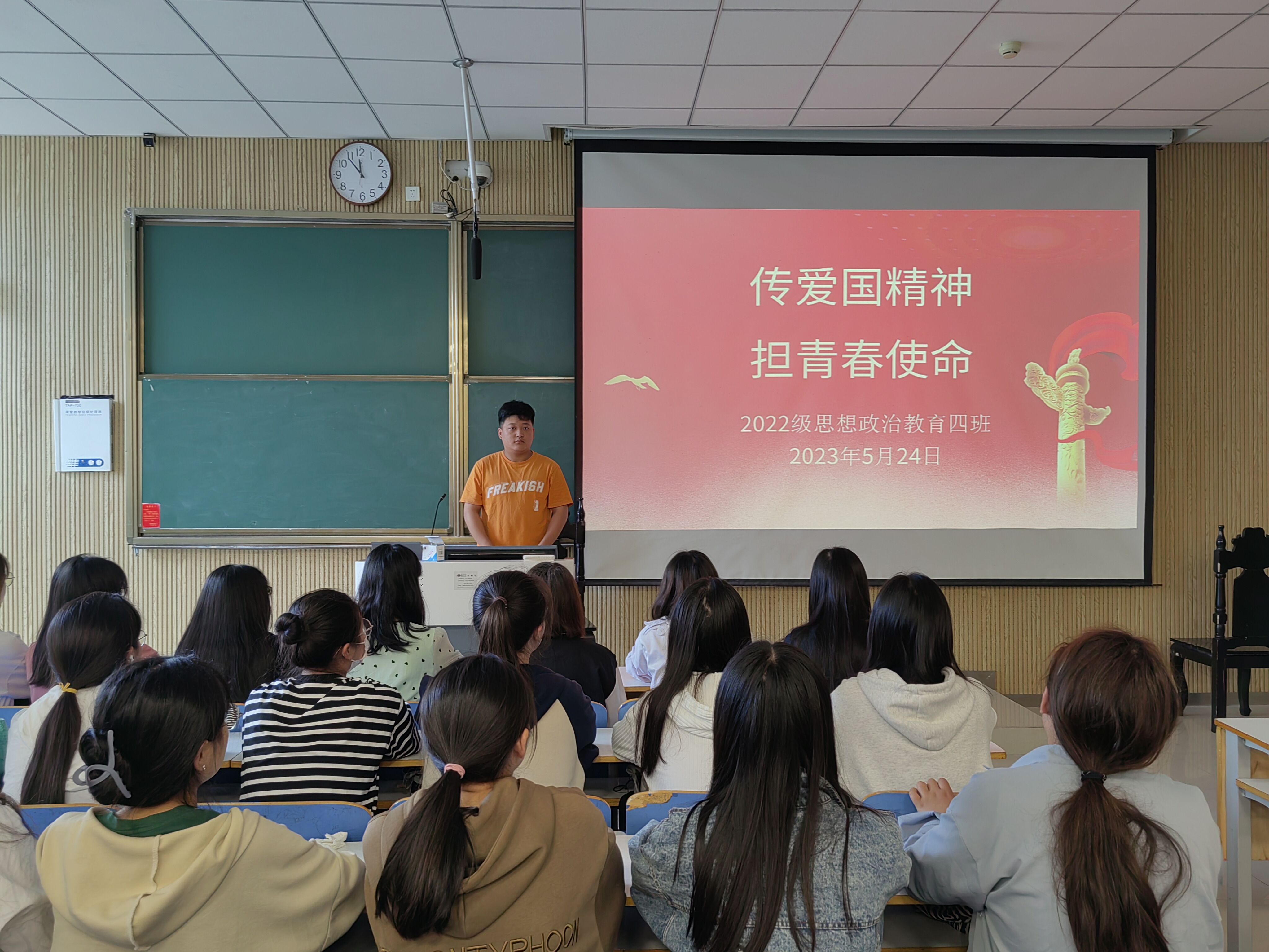 为加强爱国主义教育,培养同学们的爱国主义情怀, 5月24日上午,beat365在线唯一官网2022级思想政治教育四班在社科楼515教室召开“传爱国精神,担青春使命”主题班会,beat3652022级思想政治教育四班全体同学参加本次班会。会议由副班长宋奕铭主持。
