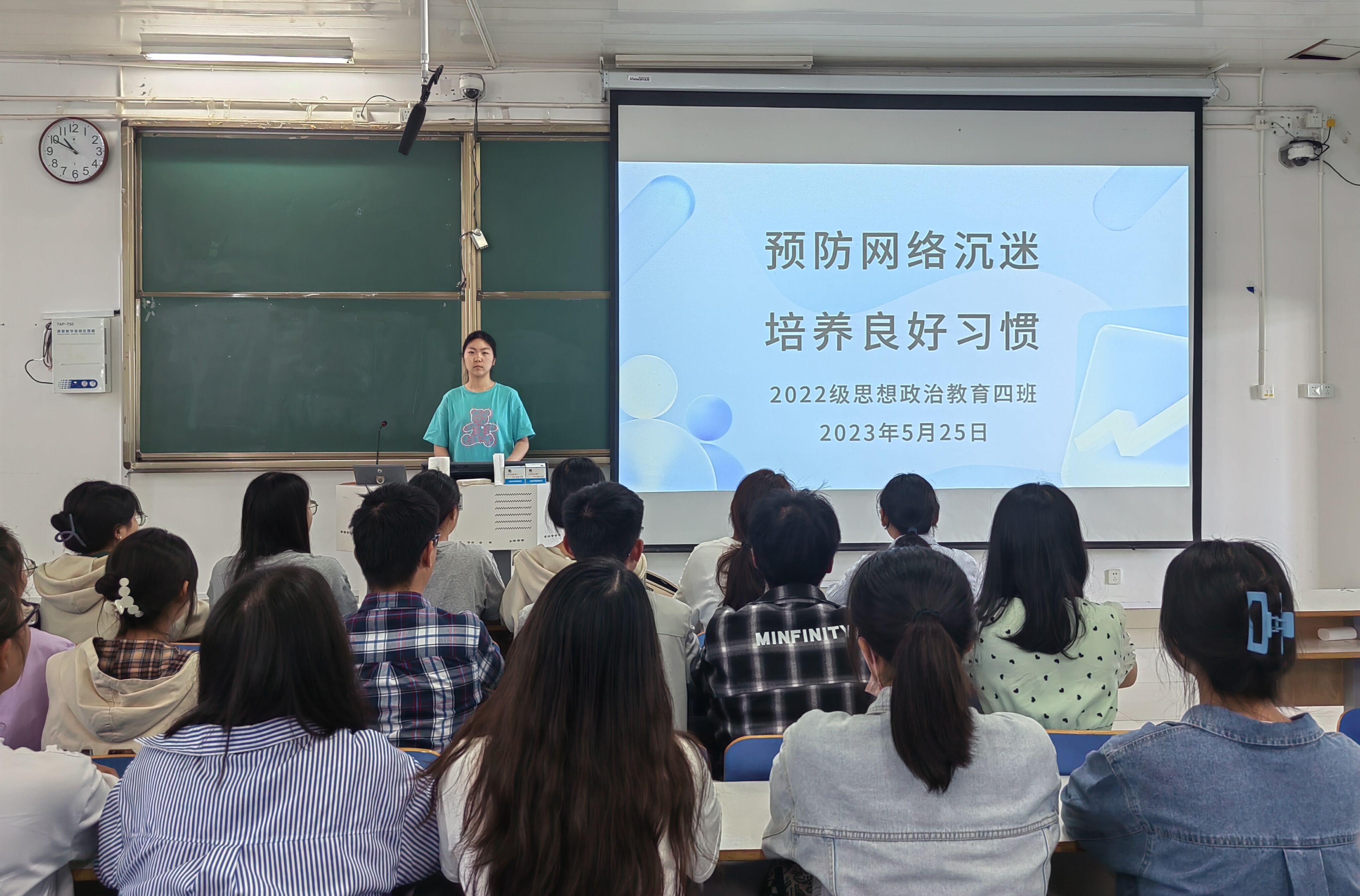 5月25日上午,beat365在线唯一官网2022级思想政治教育四班在社科楼514教室召开“预防网络沉迷,培养良好习惯”主题班会,beat3652022级思想政治教育四班全体同学参与本次班会。班长牛志杰主持班会。