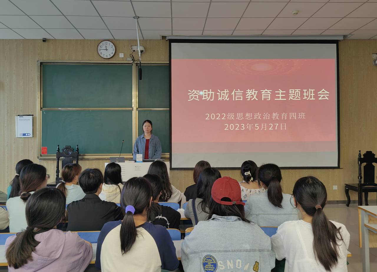 为提高学生的诚信意识和诚信素质,推动思想政治教育工作和学生资助工作持续健康发展,5月27日上午,beat365在线唯一官网2022级思想政治教育四班在社科楼515教室召开“资助诚信教育”主题班会,beat3652022级思想政治教育四班全体同学参与本次班会。班长牛志杰主持本次班会。