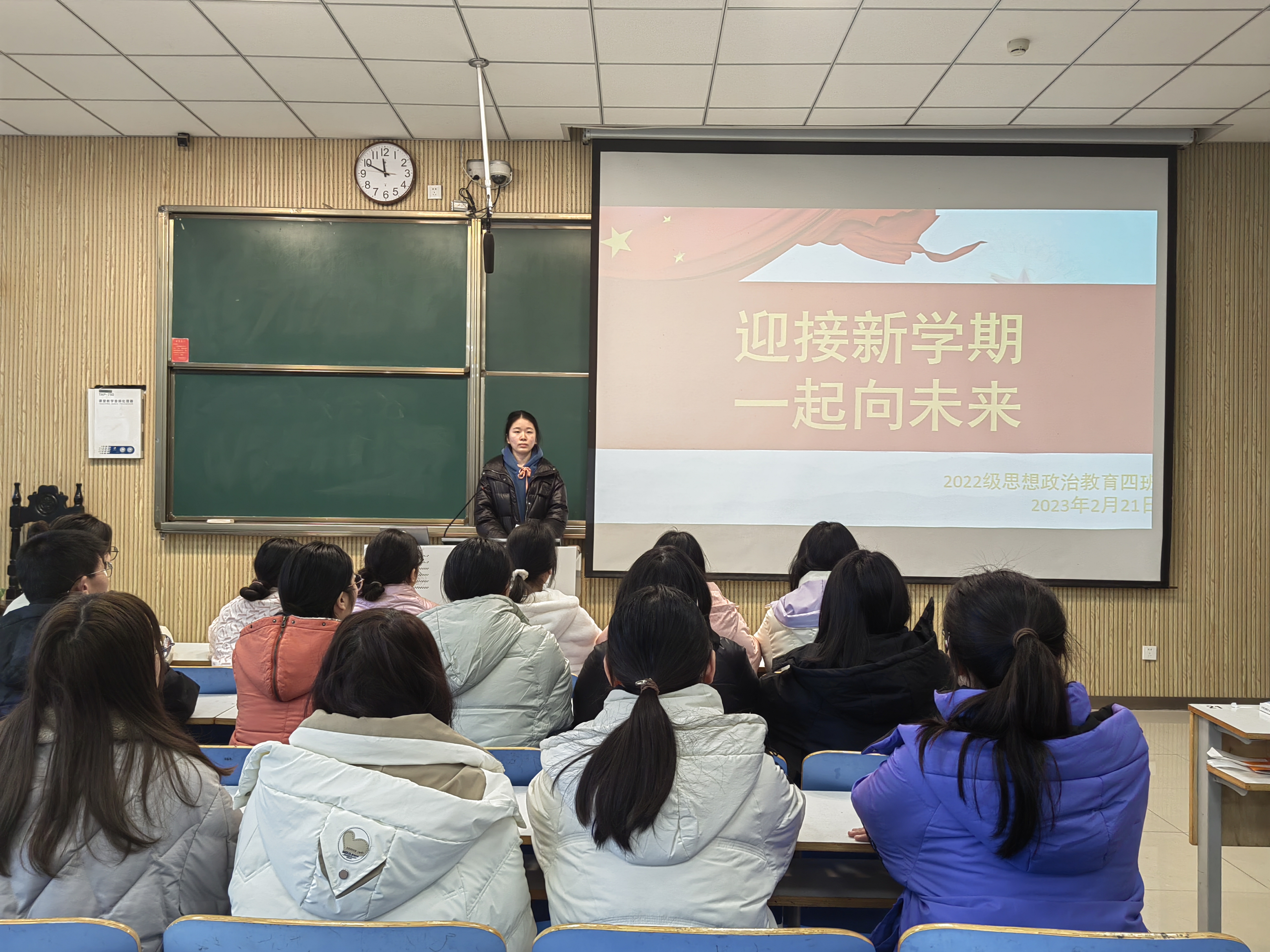 为加强新学期学风、纪律教育,更好开展班级活动,2月21日上午,beat365在线唯一官网2022级思想政治教育四班在社科楼515教室召开“拥抱新学期,一起向未来”主题班会,2022级思想政治教育四班全体同学参加会议。会议由班长牛志杰主持。