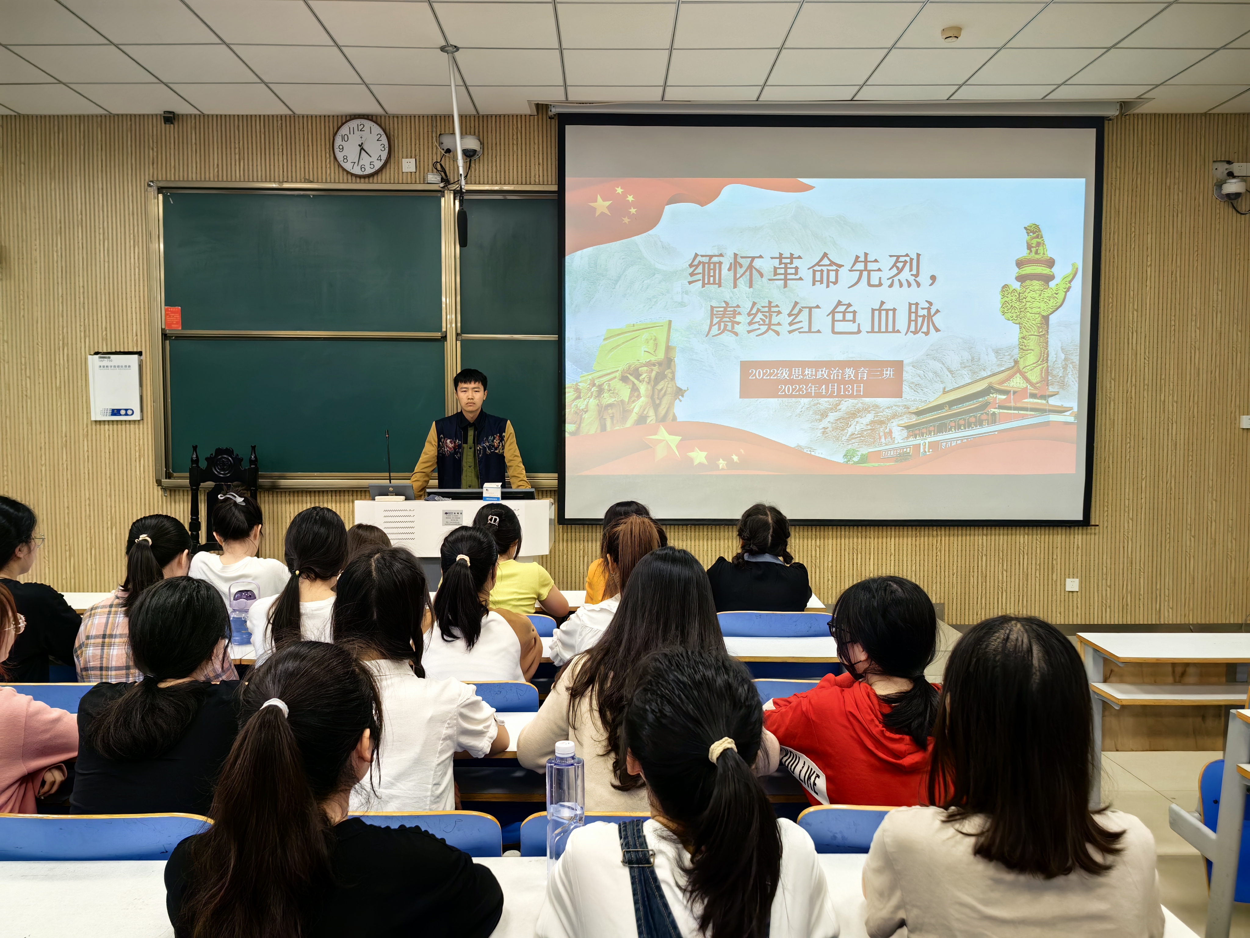 为传承红色基因,弘扬革命精神,4月13日下午,beat365在线唯一官网2022级思想政治教育三班在社科楼515教室召开“缅怀革命先烈,赓续红色血脉”主题团课。beat3652022级思想政治教育三班全体成员共同参与此次主题团课。团课由团支书余浩洋主持。