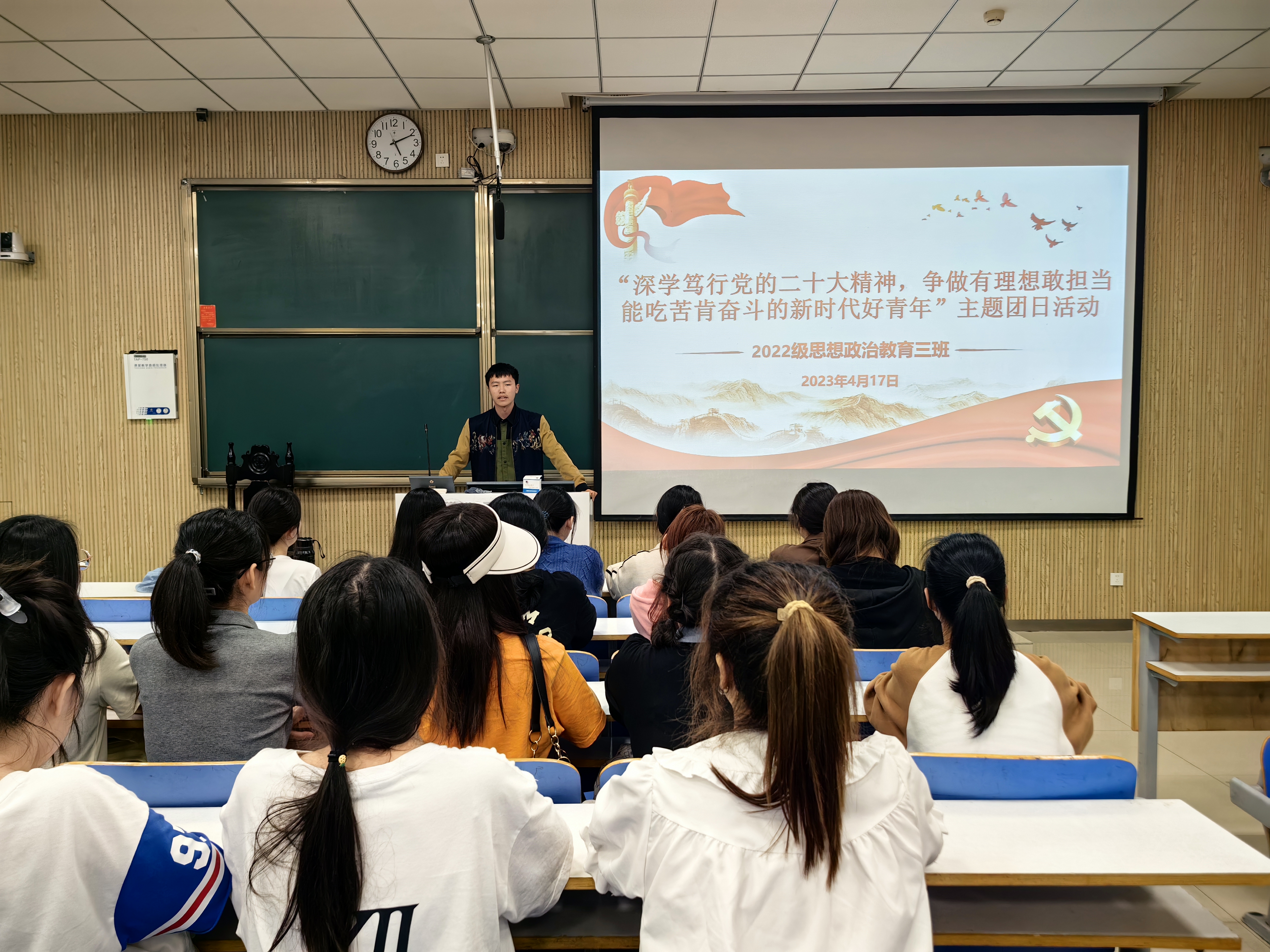 4月17日下午,beat365在线唯一官网2022级思想政治教育三班在社科楼515教室召开“深学笃行二十大,争做时代新青年”主题团课。beat3652022级思想政治教育三班全体成员共同参加此次团课。团课由团支书余浩洋主持。