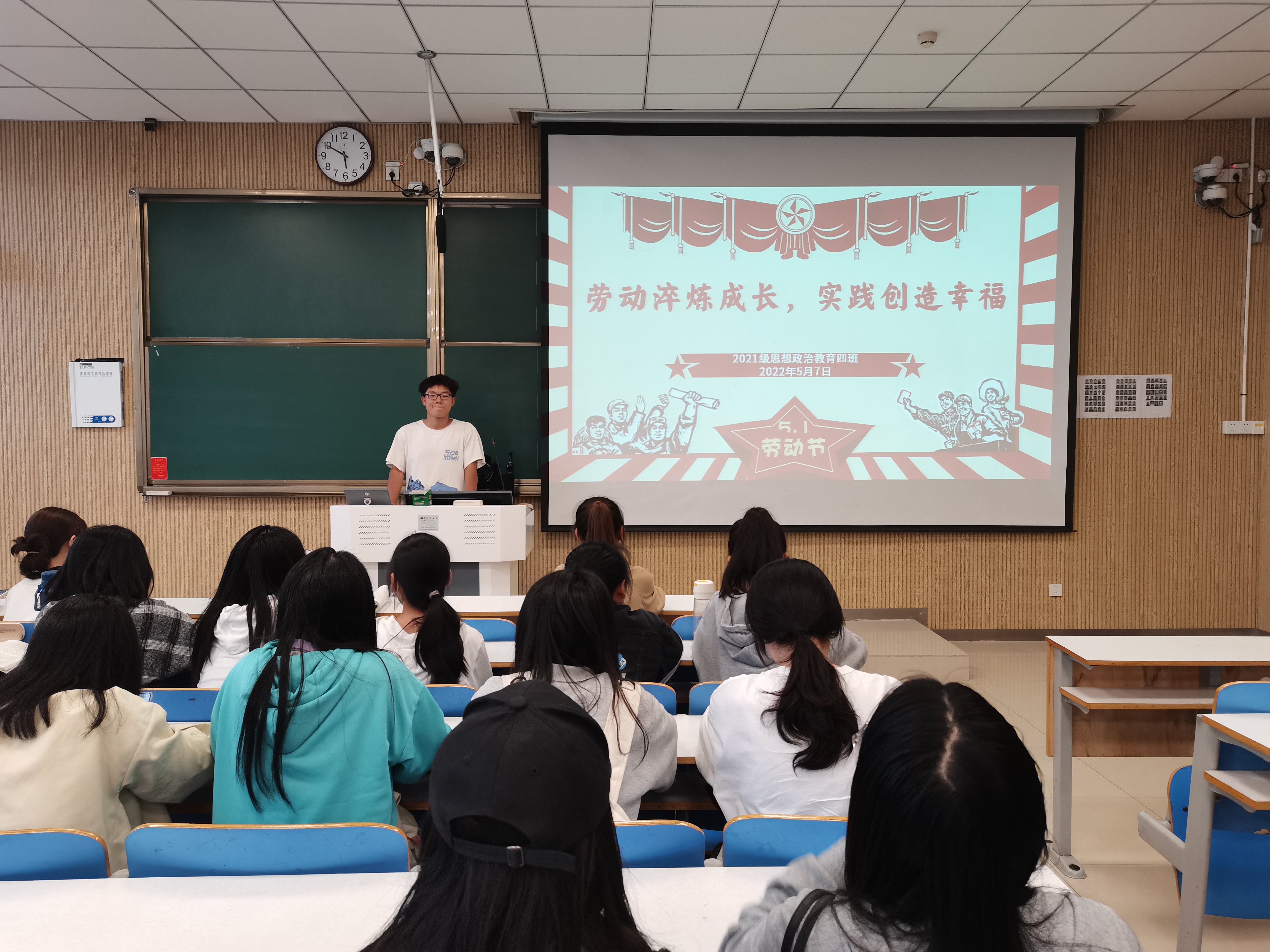 为培养同学们的劳动能力,让劳动精神在青年中发扬光大,5月7日下午,beat365在线唯一官网2021级思想政治教育四班在社科楼515教室开展“劳动淬炼成长,实践创造幸福”主题班会。2021级思想政治教育四班全体同学共同参会。班会由副班长常康哲主持。