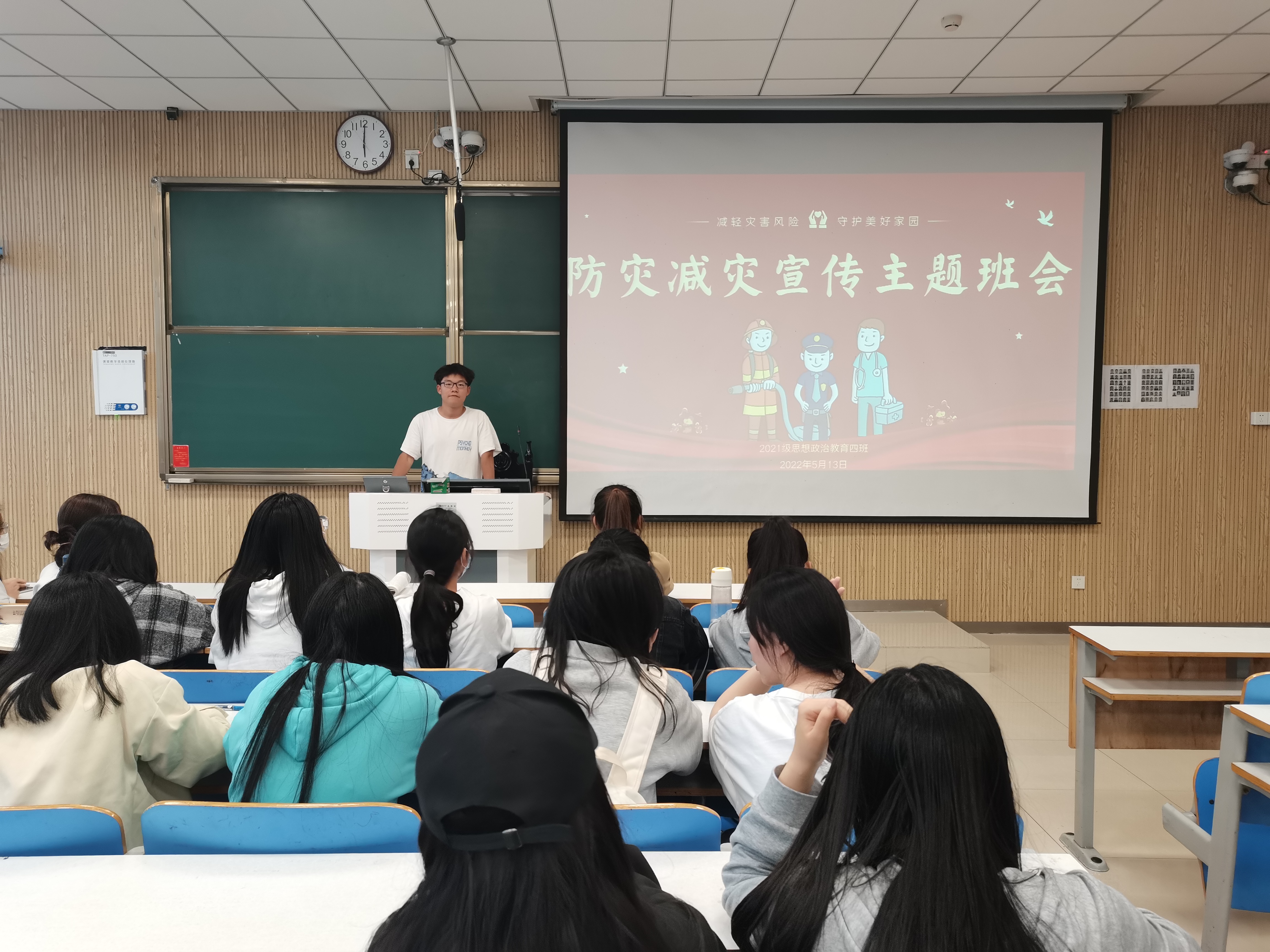 为增强同学们的防灾减灾意识,减轻自然灾害的风险,5月13日下午,beat365在线唯一官网2021级思想政治教育四班在社科楼515教室开展防灾减灾宣传主题班会。2021级思想政治教育四班全体同学参加本次班会。班会由副班长常康哲主持。