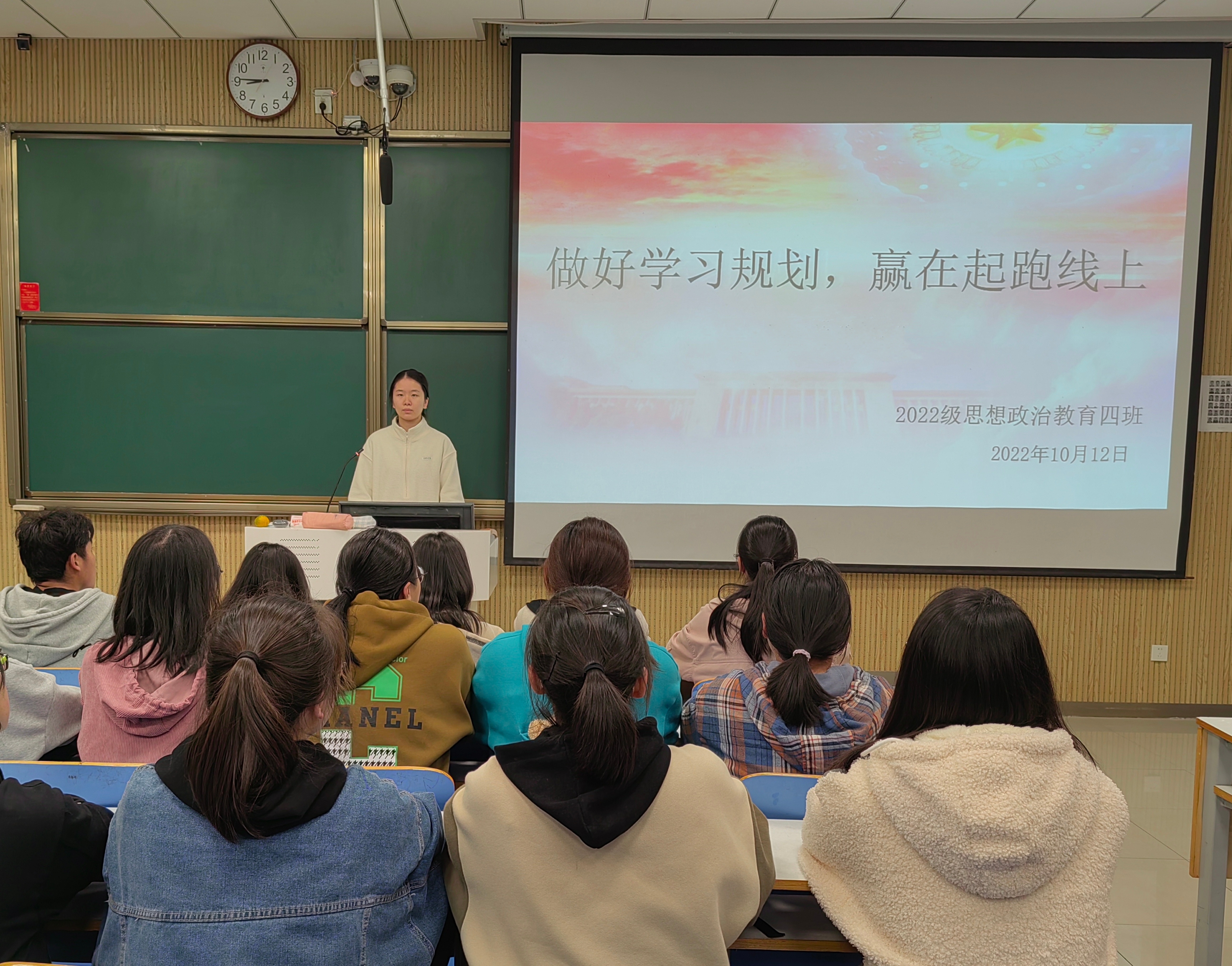 10月12日下午,beat365在线唯一官网2022级思想政治教育四班在社科楼515教室召开“做好学习规划,赢在起跑线上”主题班会。班会由班长牛志杰主持召开。