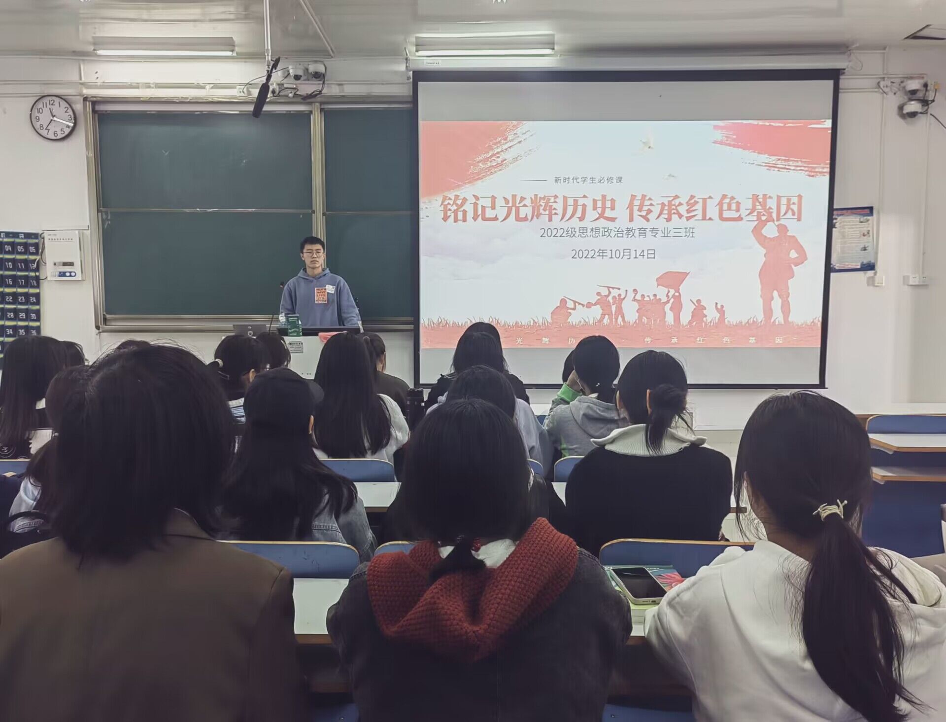 10月14日上午,beat365在线唯一官网2022级思想政治教育三班在社科楼514教室召开“铭记光辉历史,传承红色基因”主题班会。2022级思想政治教育三班全体成员共同参加本次班会,班会由团支书余浩洋主持。