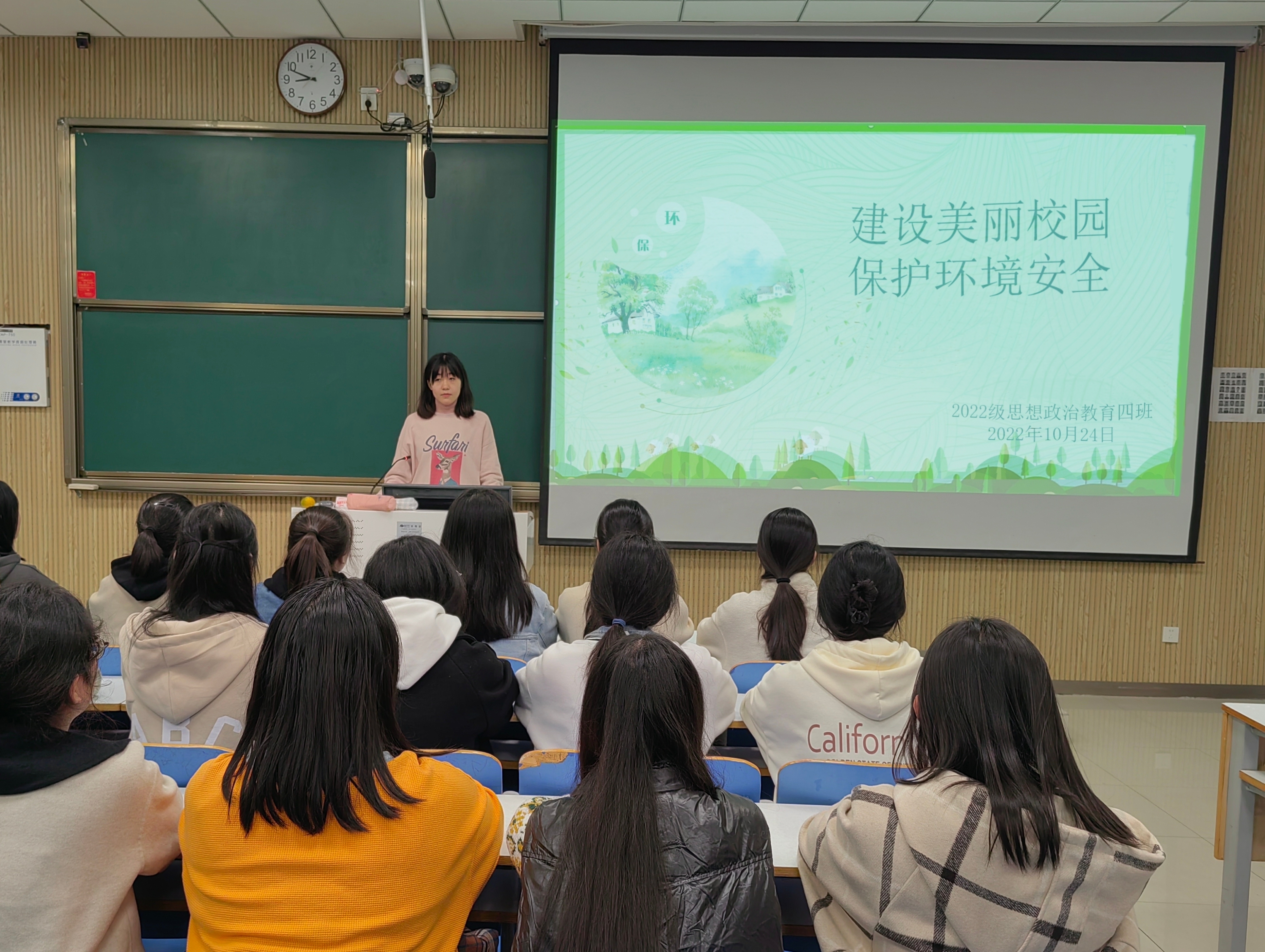 为贯彻绿色发展理念,提高同学们的环保意识,10月24日下午,beat365在线唯一官网2022级思想政治教育四班在社科楼515教室召开“建设美丽校园,保护环境安全”主题班会。会议由文体委员周可盈主持。
