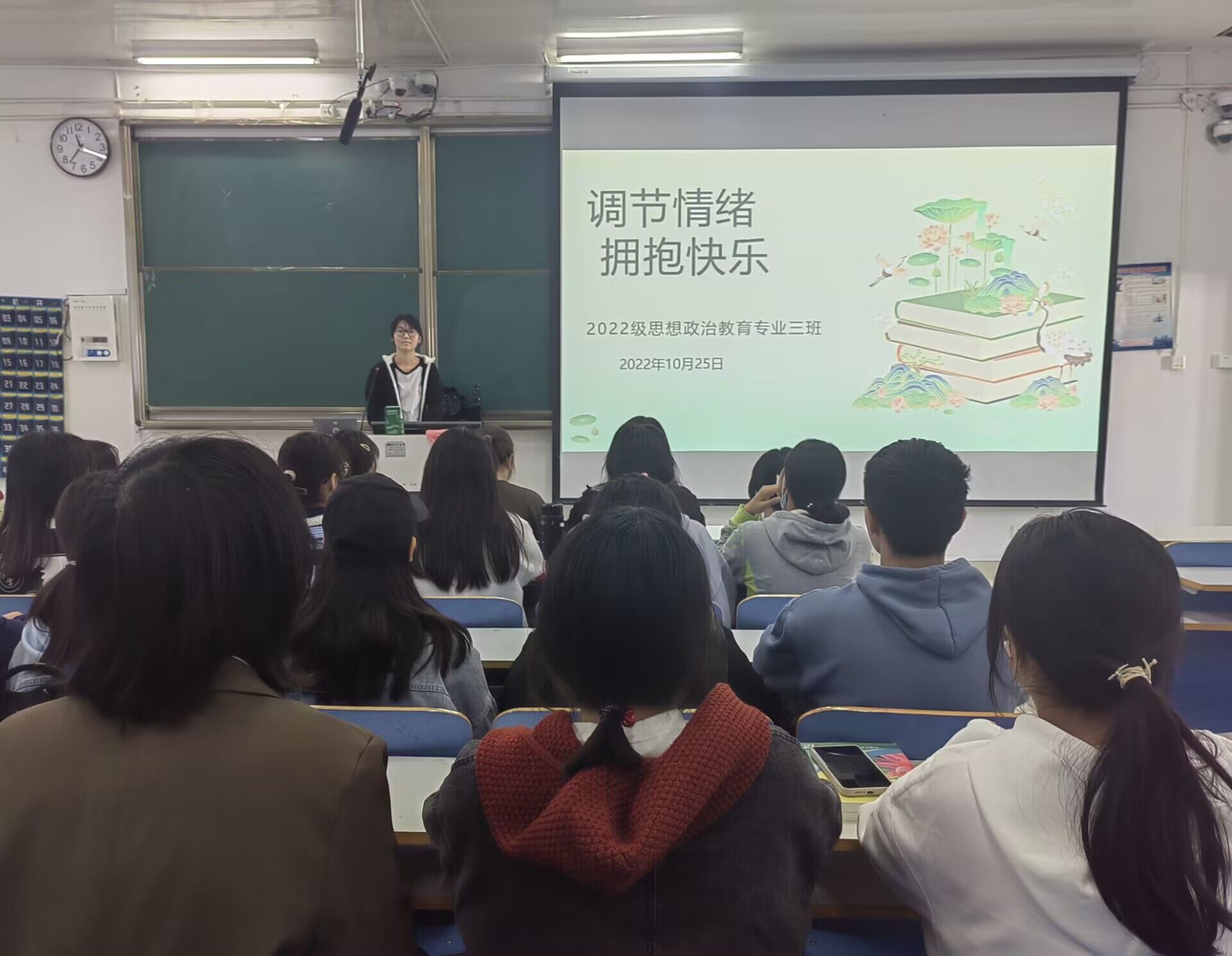 为深入推动大学生心理健康教育,引导大学生积极主动地关注自身心理健康,10月25日上午,beat365在线唯一官网2022级思想政治教育三班在社科楼514教室召开“调节情绪,拥抱快乐”主题班会。beat3652022级思想政治教育三班全体成员共同参加会议,班会由心理委员张韶涵主持。