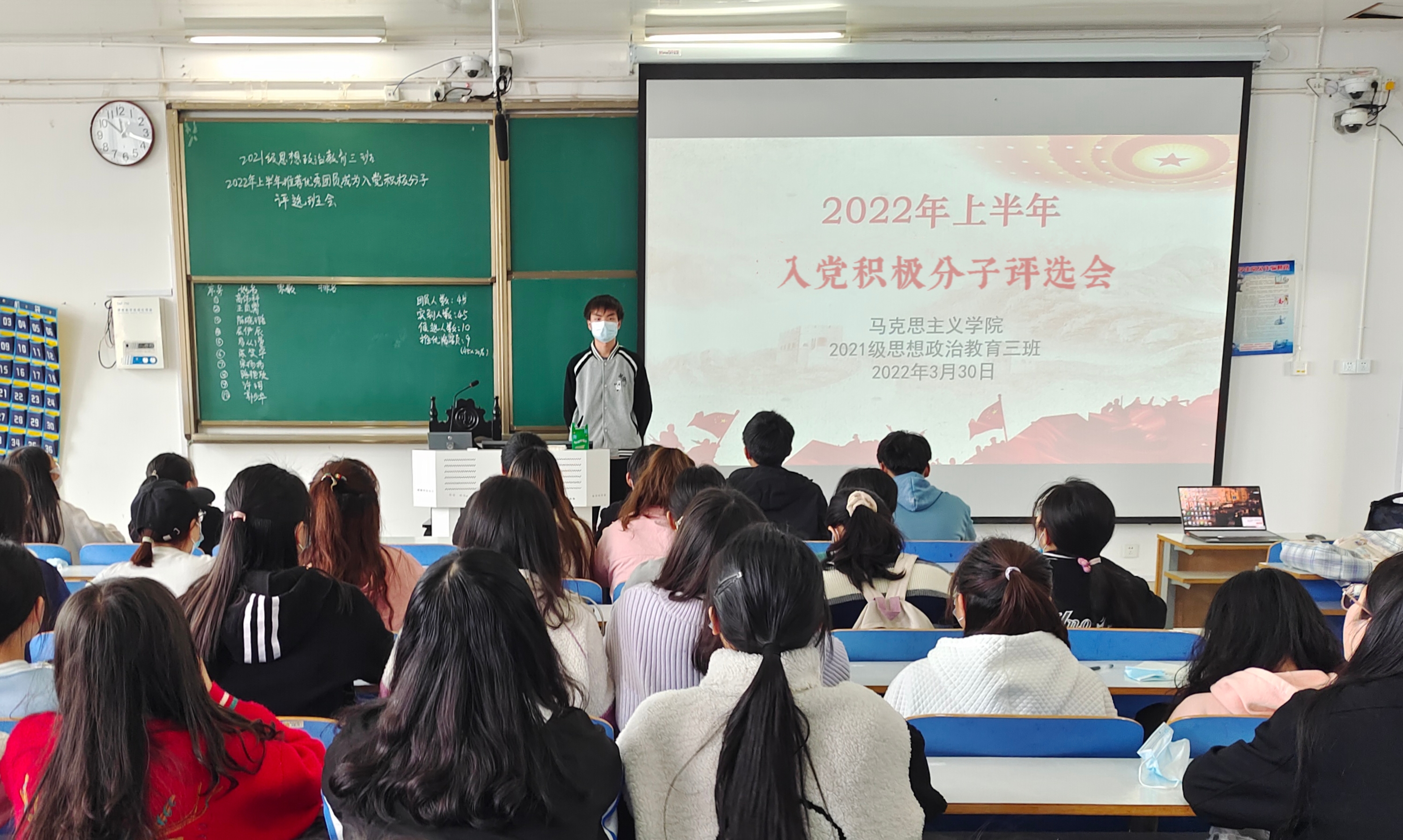 3月30日上午,beat365在线唯一官网2021级思想政治教育三班在社科楼514教室召开2022年上半年入党积极分子评选会。2021级思想政治教育三班全体同学参加了此次会议。会议由团支书郭少华主持。