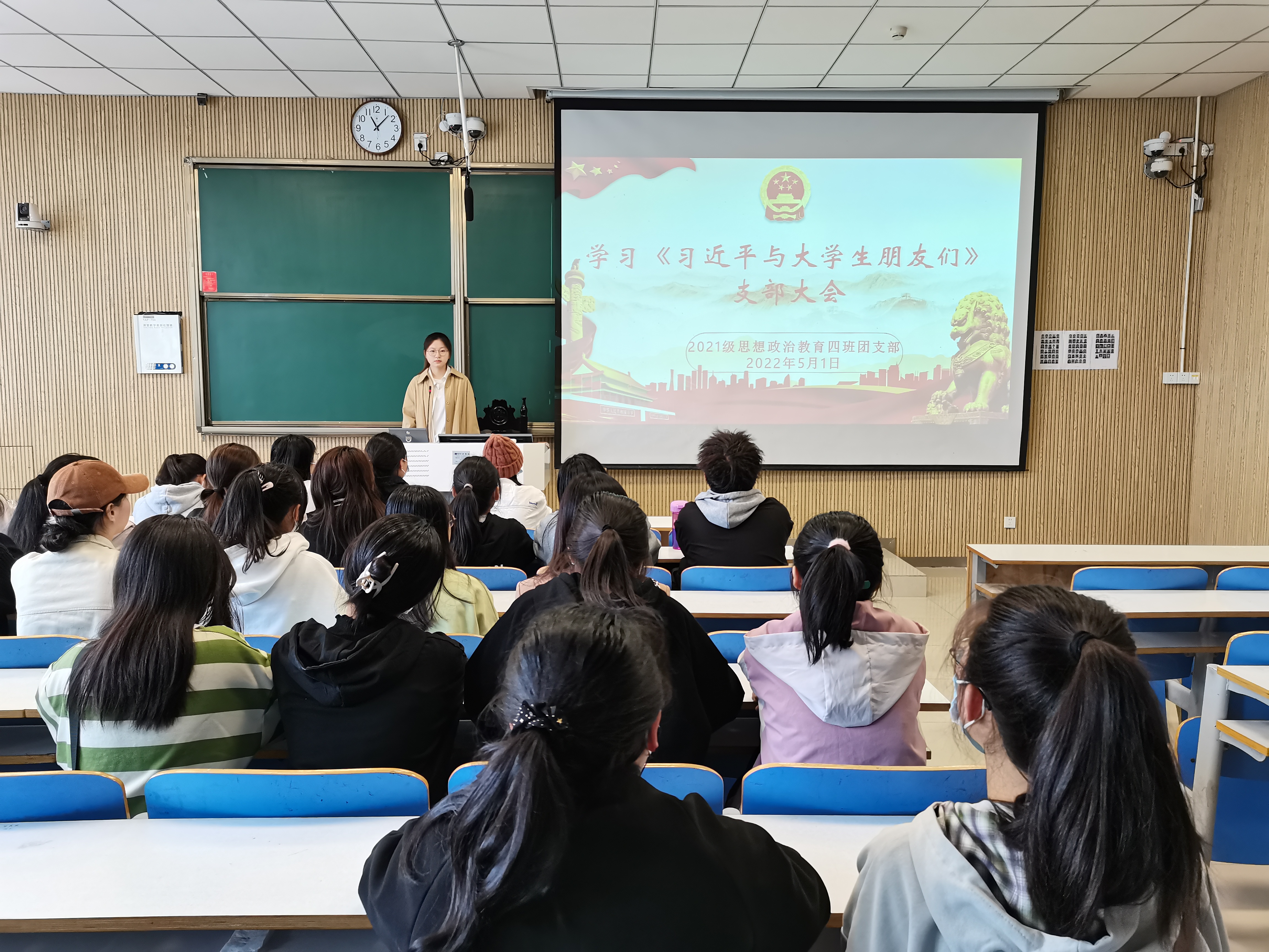 为追寻领袖足迹,聆听时代声音,5月1日上午,beat365在线唯一官网2021级思想政治教育四班在社科楼515教室开展学习《习近平与大学生朋友们》支部大会。2021级思想政治教育四班全体团员共同参加本次会议。会议由团支书刘珂含主持。