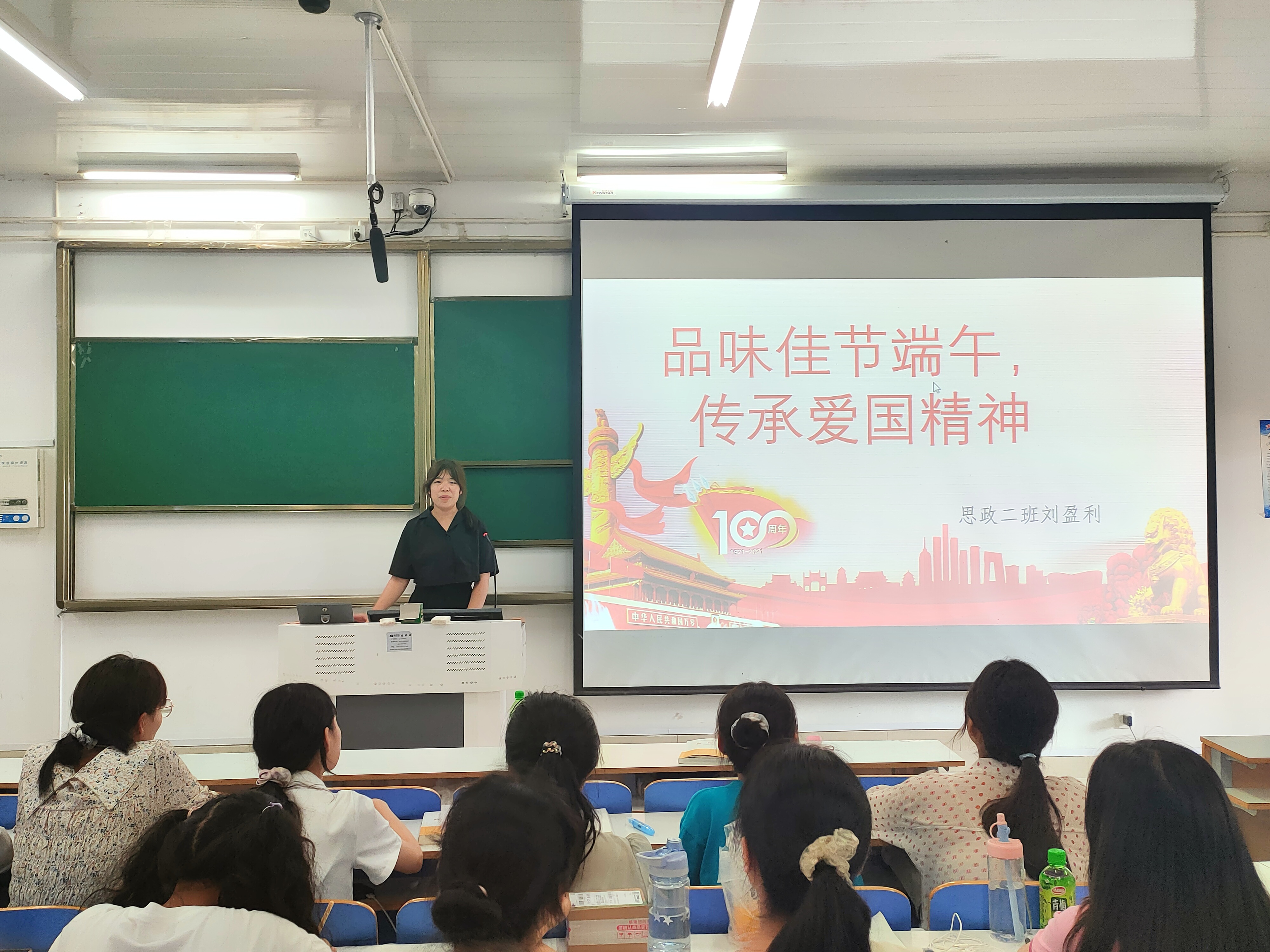 6月11日下午,beat365在线唯一官网2020级思想政治教育二班、定向二班在社科楼514教室顺利开展“品味佳节端午,传承爱国精神”主题团课。辅导员陶青青及2020级思想政治教育二班、定向二班全体团员共同参与本次团课。团课由组织委员刘盈利主持。