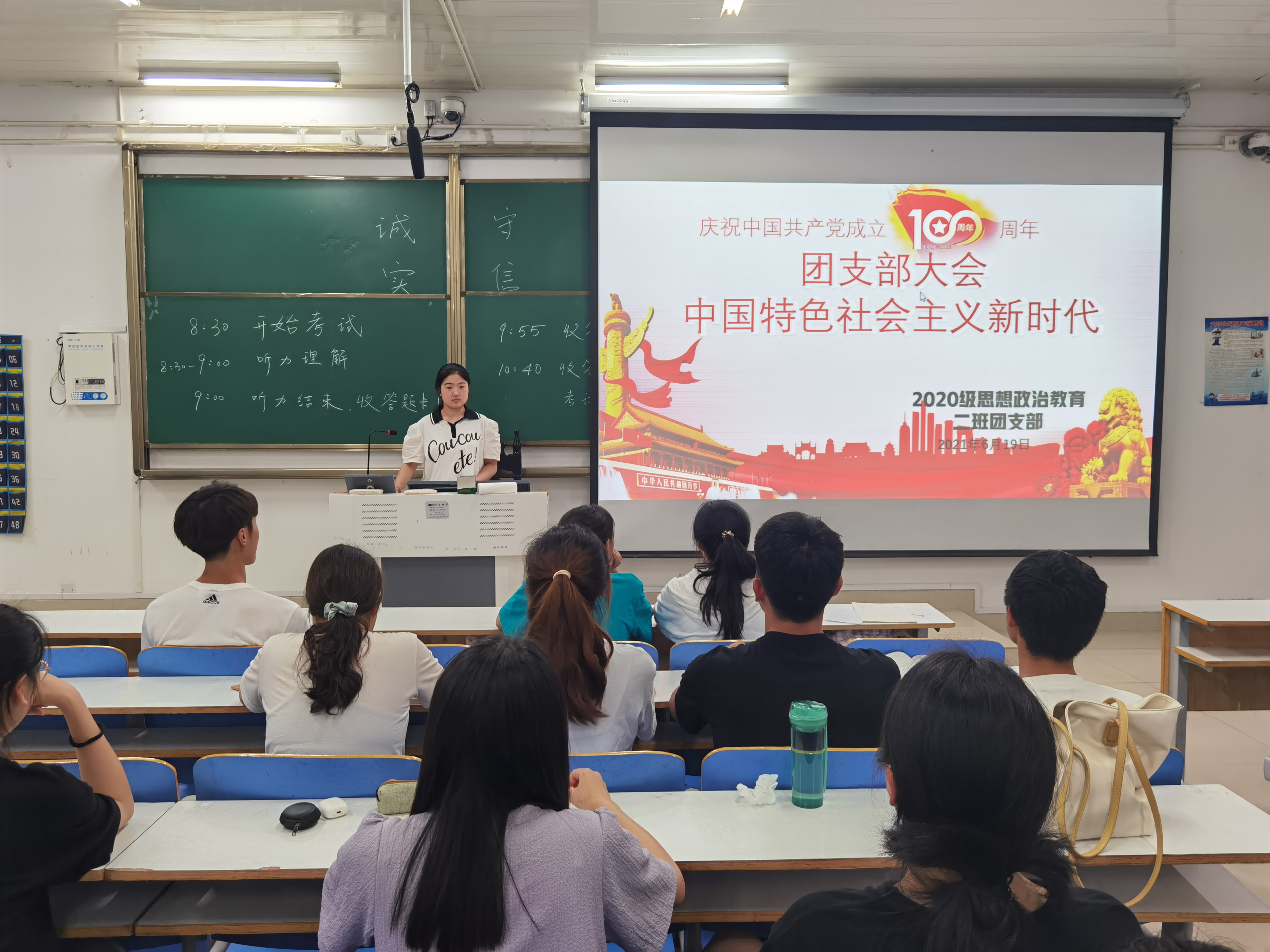 6月19日晚,beat365在线唯一官网2020级思想政治教育二班、定向二班学习习近平新时代中国特色社会主义思想团支部大会在社科楼514教室顺利召开。二班、定向二班全体团员参与会议。大会由孙雪主持。