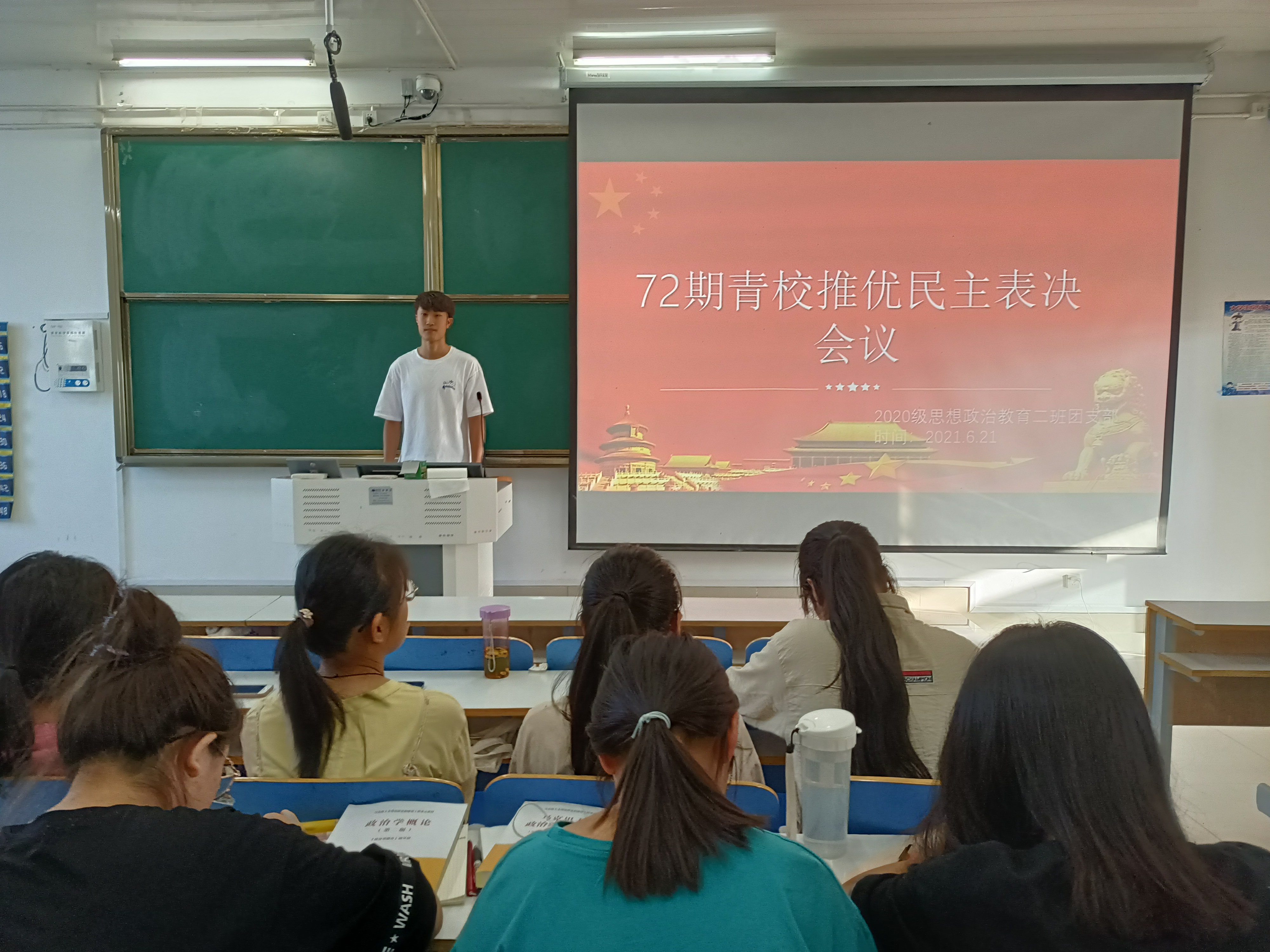 6月21日下午,beat365在线唯一官网2020级思想政治教育二班在社科楼514教室顺利召开第72期青校学员推优民主表决团支部大会。2020级思想政治教育二班全体团员共同参与本次会议。