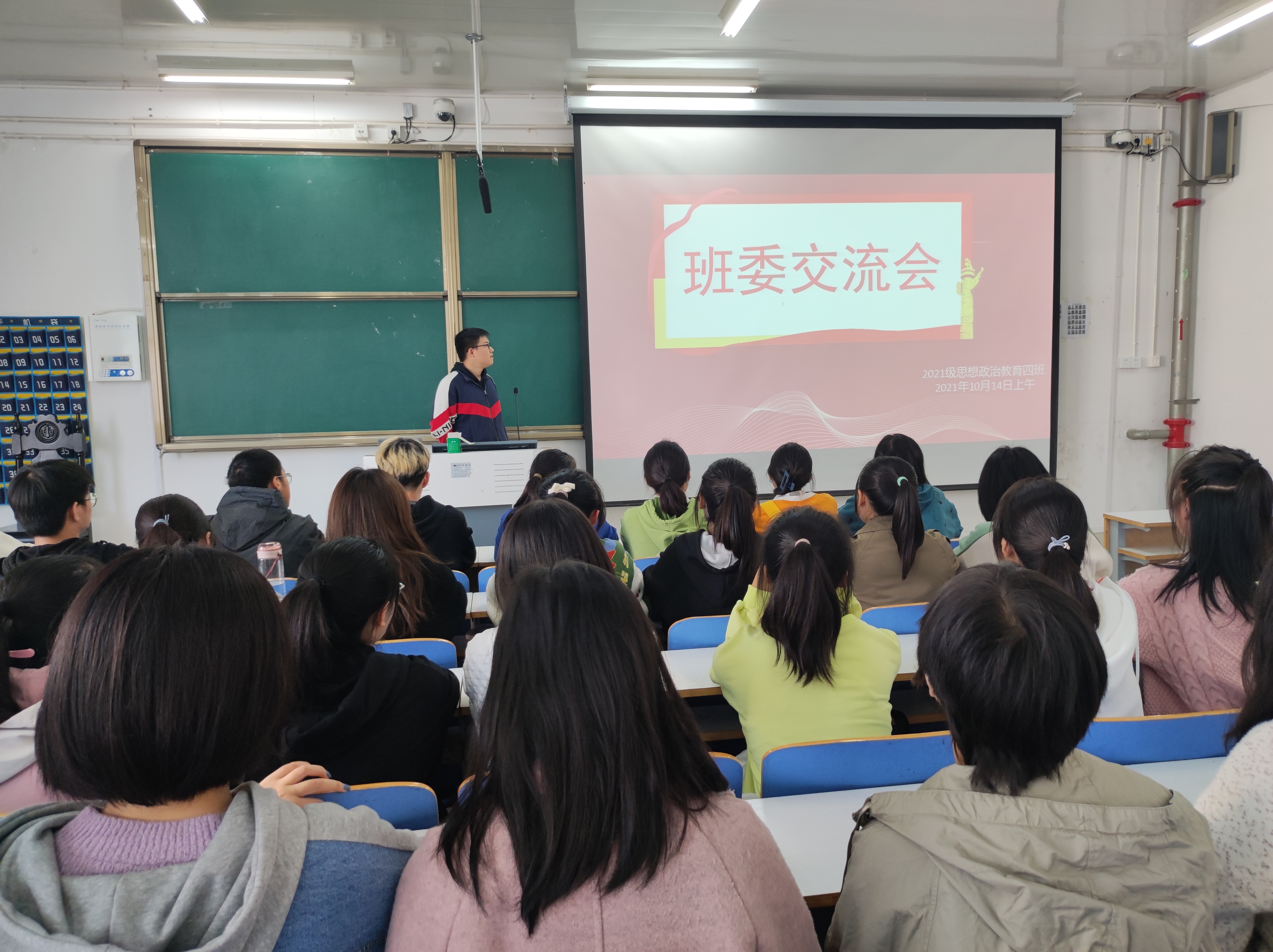 10月14日上午,beat365在线唯一官网2021级思想政治教育四班在社科楼514教室顺利召开班委交流会,班主任高小佳、2021级思想政治教育四班全体同学共同参与本次班会。班会由高小佳主持。