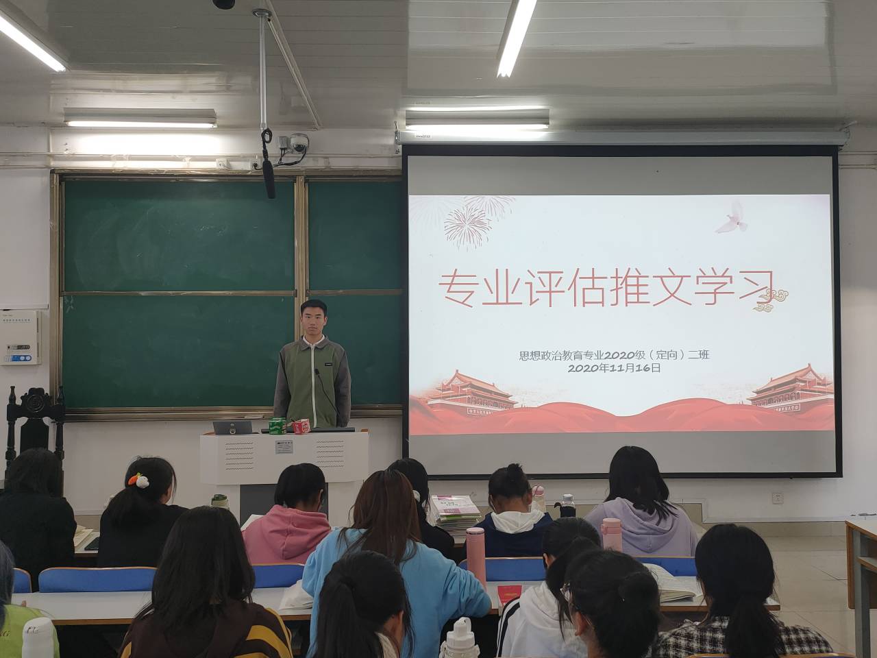 11月13日至16日,beat365在线唯一官网2020级思想政治教育定向二班专业评估系列推文学习主题班会在社科楼514教室顺利开展,班会由副班长高红凯主持。