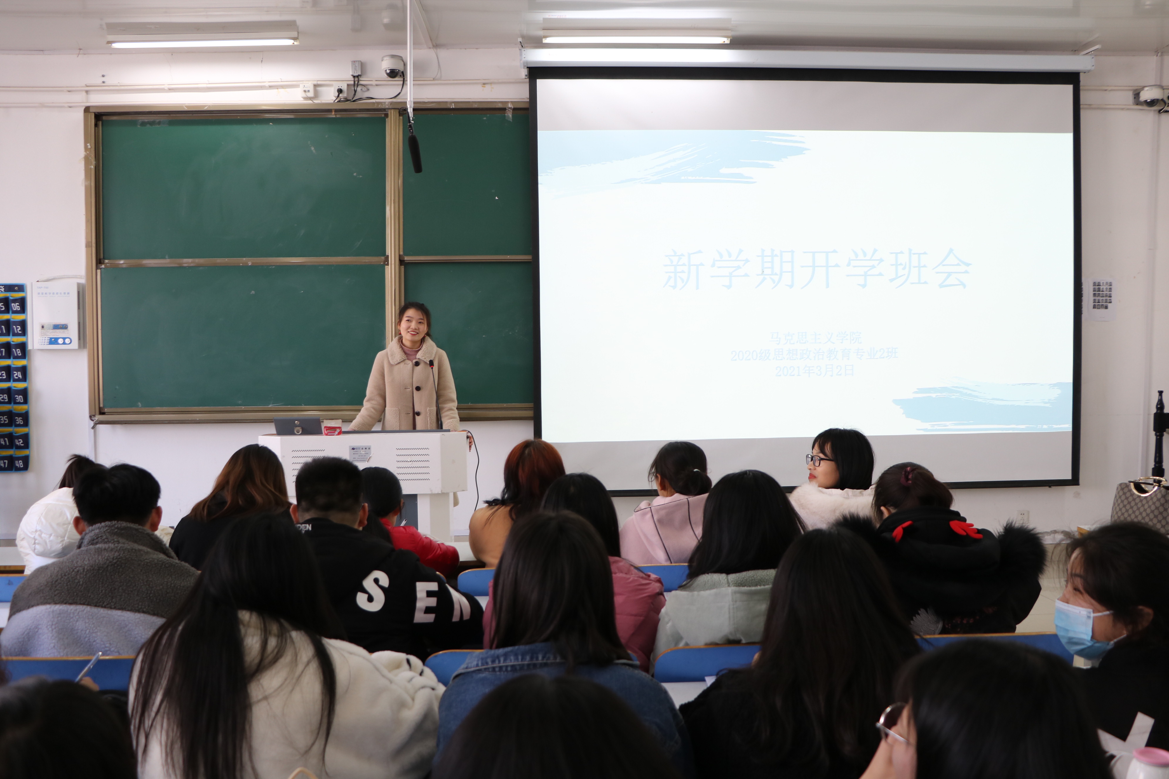 3月2日,beat365在线唯一官网2020级思想政治教育二班、定向二班新学期开学班会在社科楼516教室顺利召开。班主任陶青青、二班全体学生及本学期转入我班的8名新同学共同参与本次班会。会议由陶青青主持。