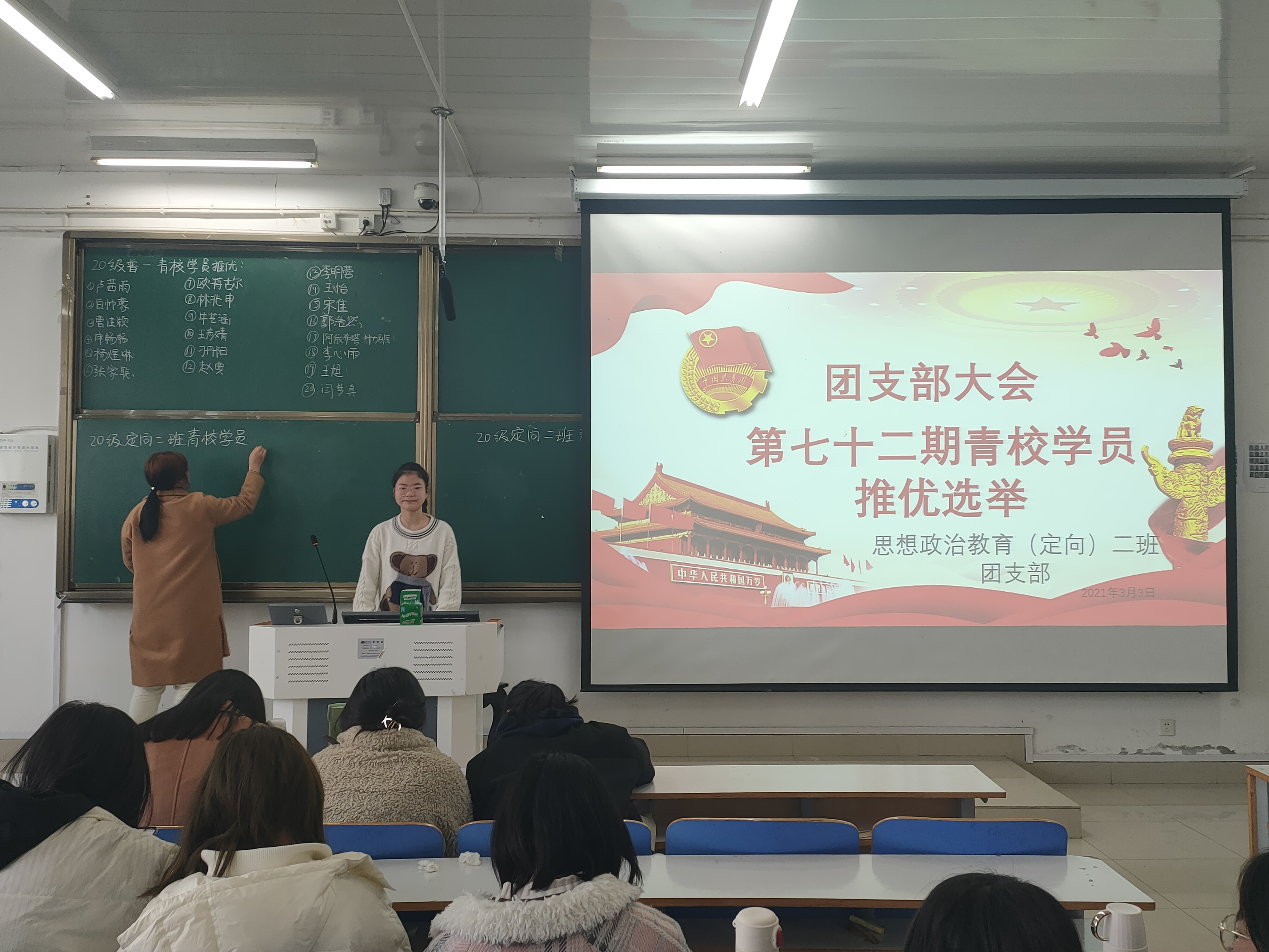 3月3日下午,beat365在线唯一官网2020级思想政治教育定向二班第72期青校学员推优选举团支部大会在社科楼516教室顺利召开。