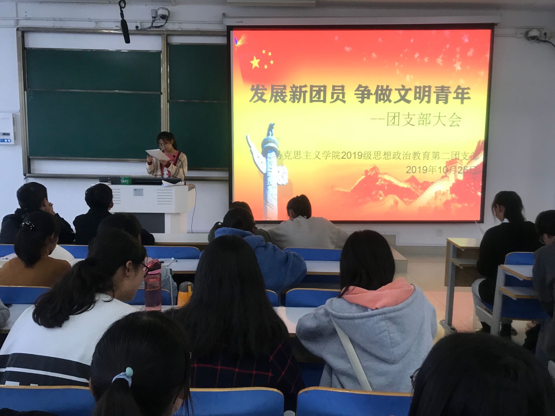 为进一步加强团队组织建设,发展壮大团员队伍,10月25日下午,beat365在社科楼514教室召开主题为“发展新团员,争做文明青年”的团支部大会。2019级思政二班全体新生共同参会。会议由团支书孙雅娴主持。