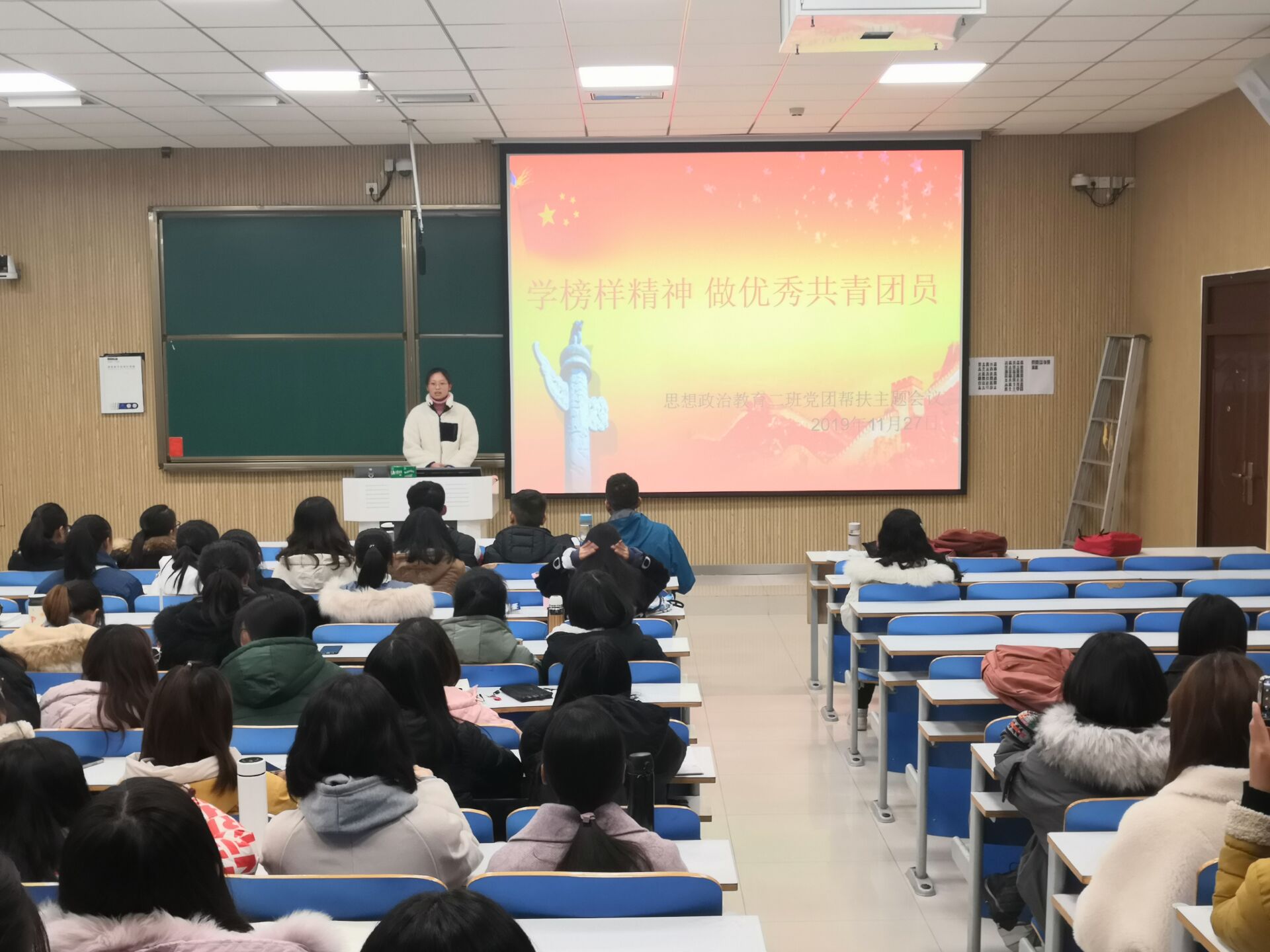 为解决学生实际问题,促进党团深入交流,11月27日下午,beat365在线唯一官网思想政治教育二班在社科楼515教室召开以“学榜样精神,做优秀共青团员”为主题的党团帮扶会议。beat365在线唯一官网思想政治教育二班全体学生共同参会。beat365在线唯一官网2016级青马学员张雅琼受邀参加本次会议,会议由团支书孙雅娴主持。