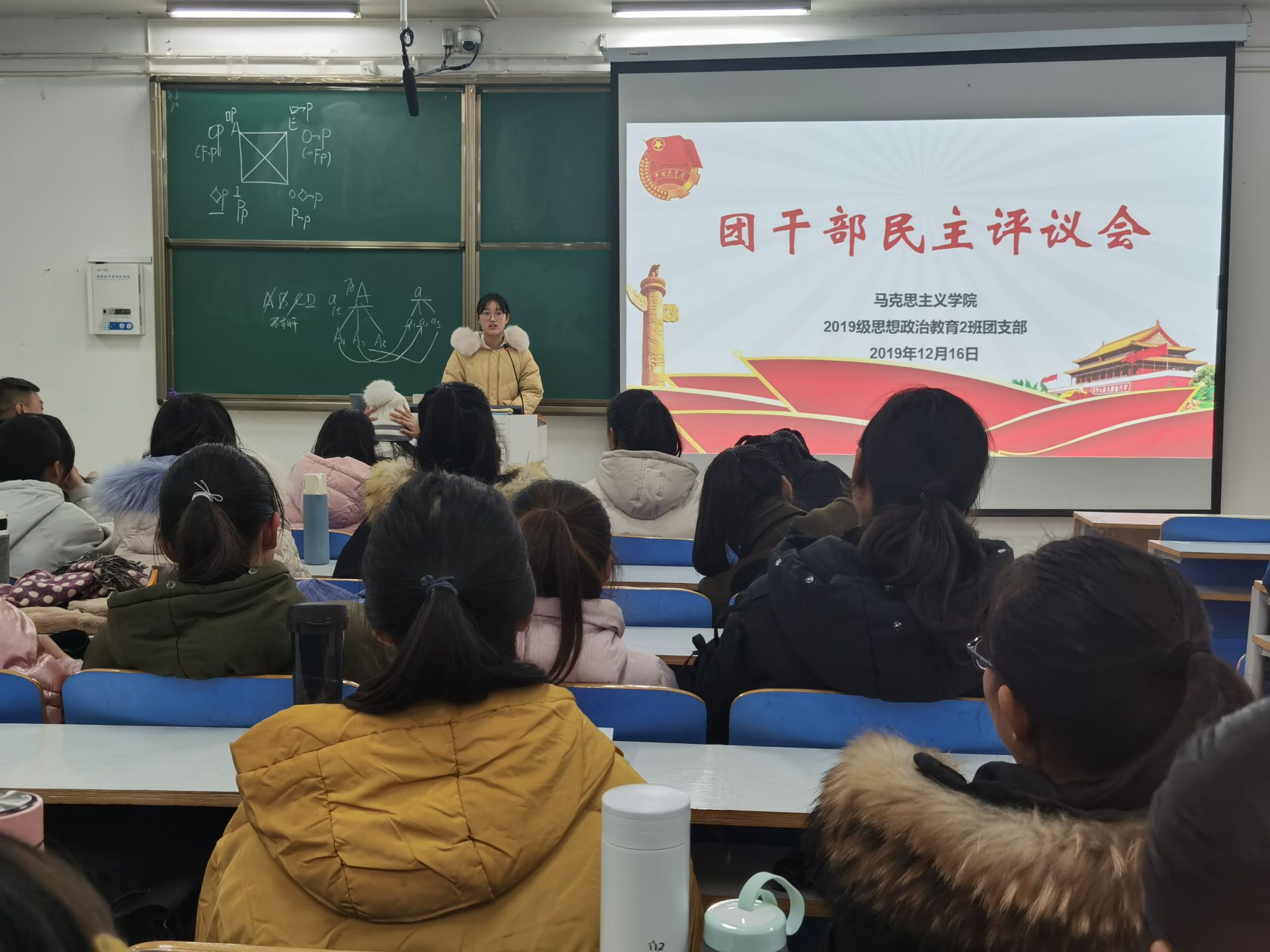 12月16日晚,beat365在线唯一官网2019级思想政治教育二班在社科楼514教室召开团干部民主评议会。会议由团支书孙雅娴主持。