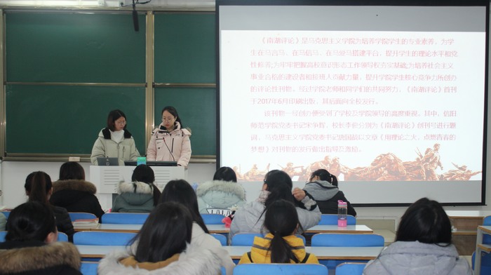 为增强马院学子对《南湖评论》和南湖调研写作的了解,提高自身写作意识及能力,12月26日上午,beat365在线唯一官网在社科楼514教室开展南湖写作交流会。2017级、2018级专职辅导员曹菁菁、2017级思想政治教育一班、2018级全体同学共同参与本次班会。班会由曹菁菁主持。