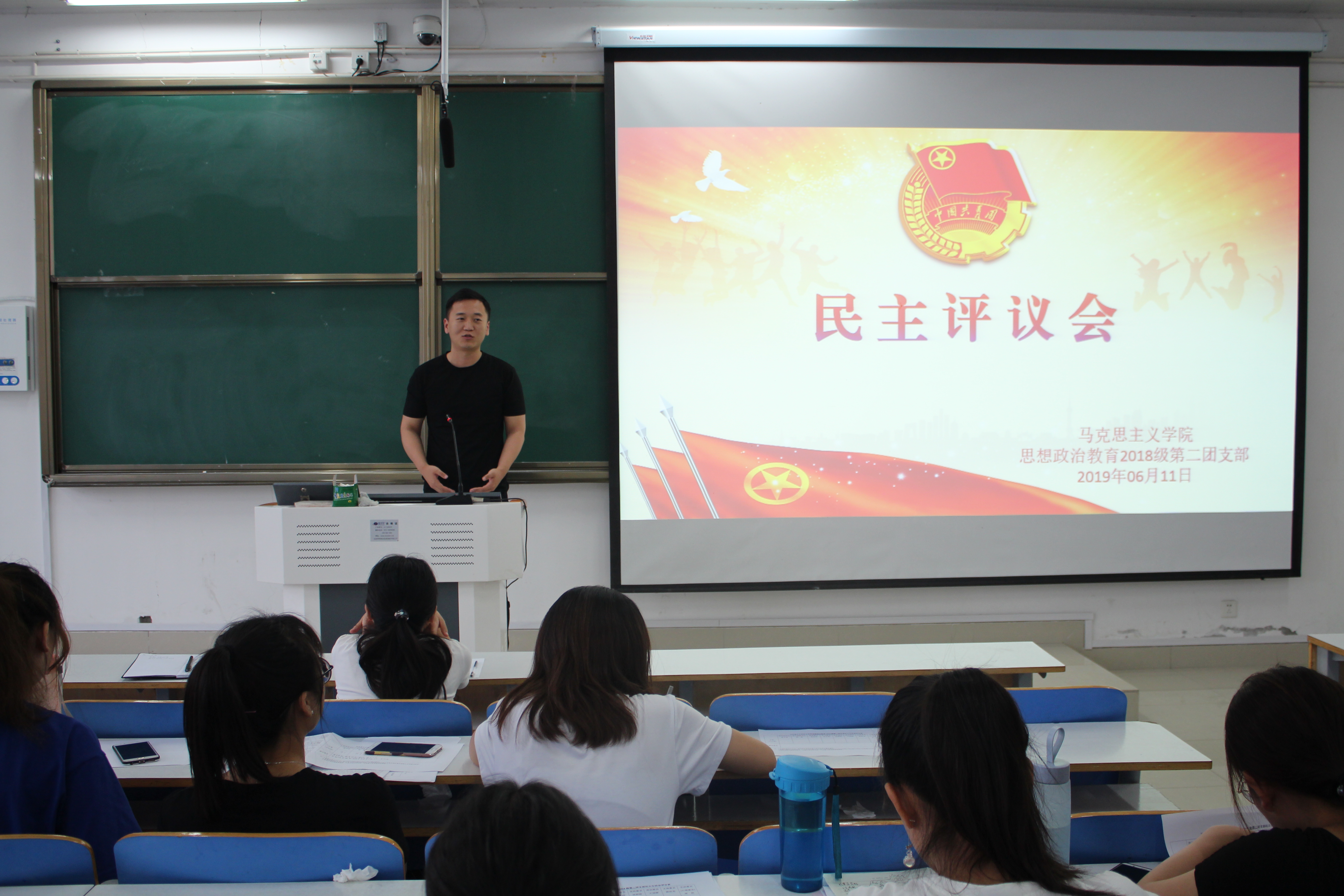 6月11日下午,beat365在线唯一官网2018级第二团支部在社科楼516教室开展了民主评议会。beat365团委书记曹栋、团委老师曹菁菁、学生会主席团及2018级第二团支部全体成员共同参加了本次会议。会议由团支部书记黄子晋主持。