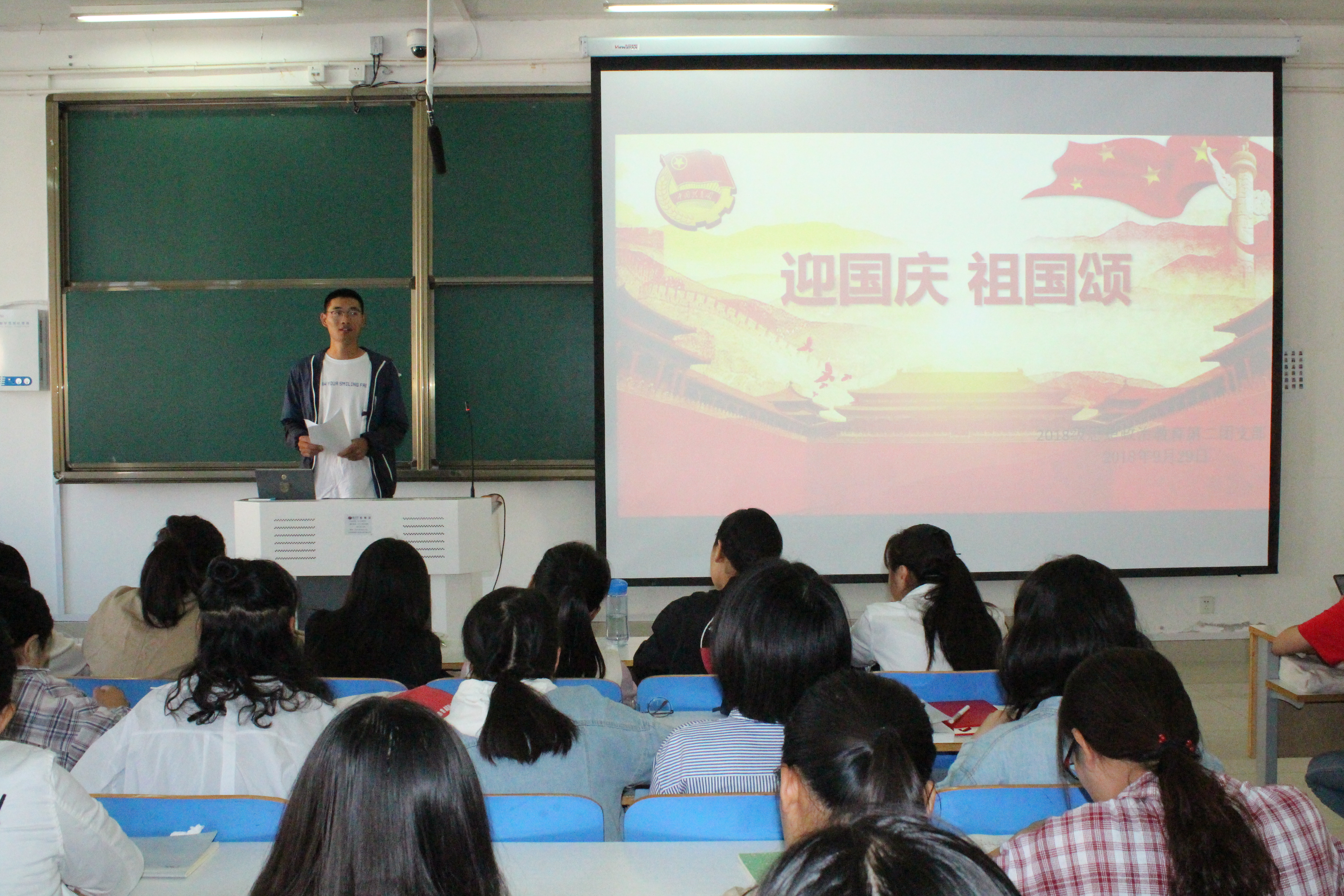 为纪念祖国成立69周年,激发beat365学子爱国热情,9月29日上午,beat365在线唯一官网2018级第二团支部召开“迎国庆、祖国颂”的主题班会。beat3652018级思想政治教育二班全体学生共同参加了本次班会。班会由班长杨康主持。