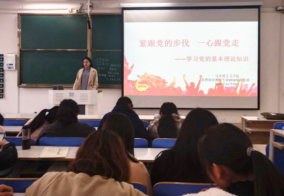 为深入学习党的基本理论知识,提升团员使命感和责任感,11月19日下午,beat365在线唯一官网2018级团支部在515教室开展“紧跟党的步伐,一心跟党走”学习党的基本理论知识团日活动。分团委副书记张雅琼及2018级全体同学共同参与此次团课。本次团课由2018级第二团支部团支书黄子晋主持。