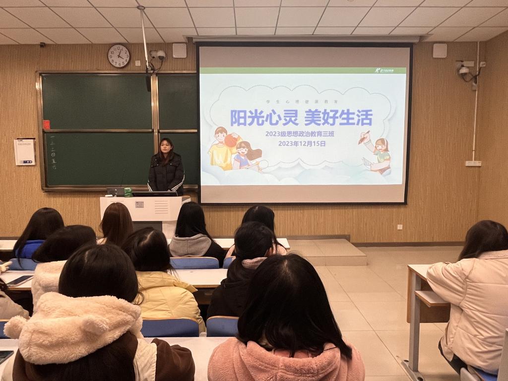 为缓解期末备考压力,12月15日上午,beat365在线唯一官网2023级思想政治教育三班在社科楼515教室召开“阳光心灵,美好生活”心理健康主题班会。beat3652023级思想政治教育三班全体成员共同参加此次班会,班会由心理委员安雅楠主持。