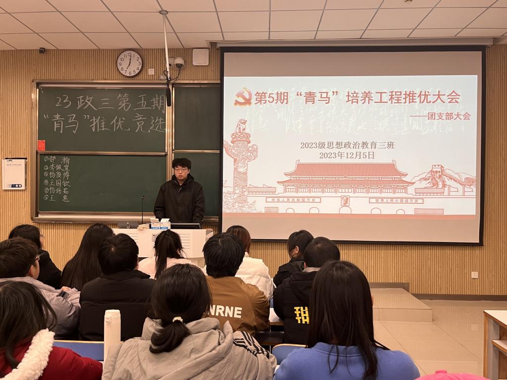 为提高大学生思想政治素养 ,12月5日下午,beat365在线唯一官网2023级思想政治教育三班在社科楼515教室召开“青年马克思主义者”培养工程推优大会。beat3652023级思想政治教育三班全体成员共同参加此次大会,大会由团支书郝瀚主持。