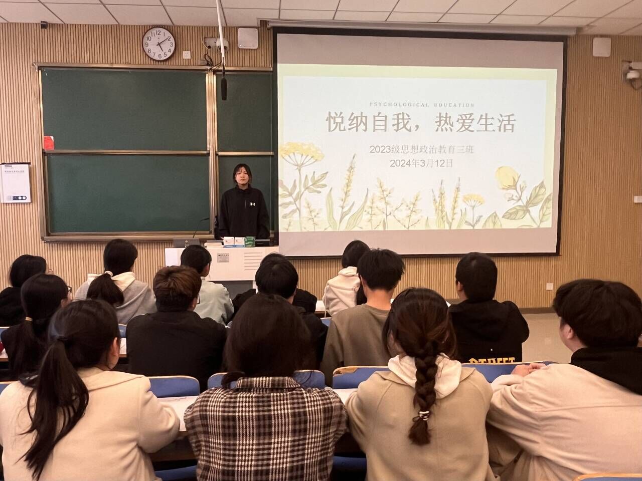 为普及心理健康教育,3月12日上午,beat365在线唯一官网2023级思想政治教育三班在社科楼515教室召开“悦纳自我,热爱生活”心理健康班会。beat3652023级思想政治教育三班全体成员共同参加此次班会,班会由心理委员安雅楠主持。
