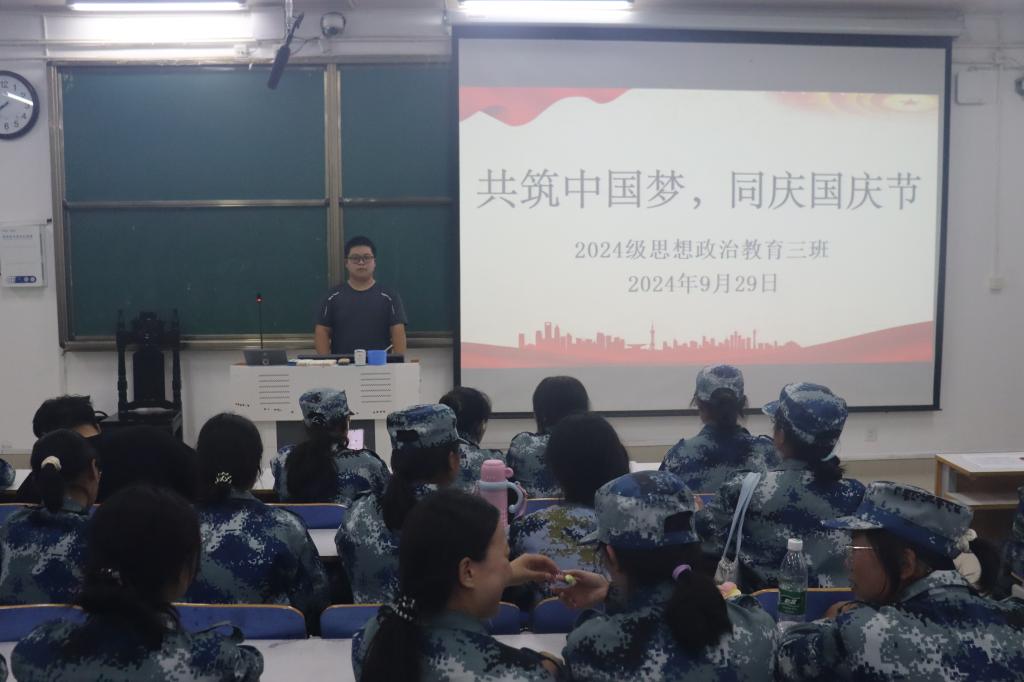 为庆祝祖国成立75周年,激发广大学生的爱国情怀和民族自豪感,9月29日晚,beat365在线唯一官网2024级思想政治教育三班在社科楼514教室召开了“共筑中国梦,同庆国庆节”团课活动。此次团课由班代王国钦主持,全体三班同学参加。