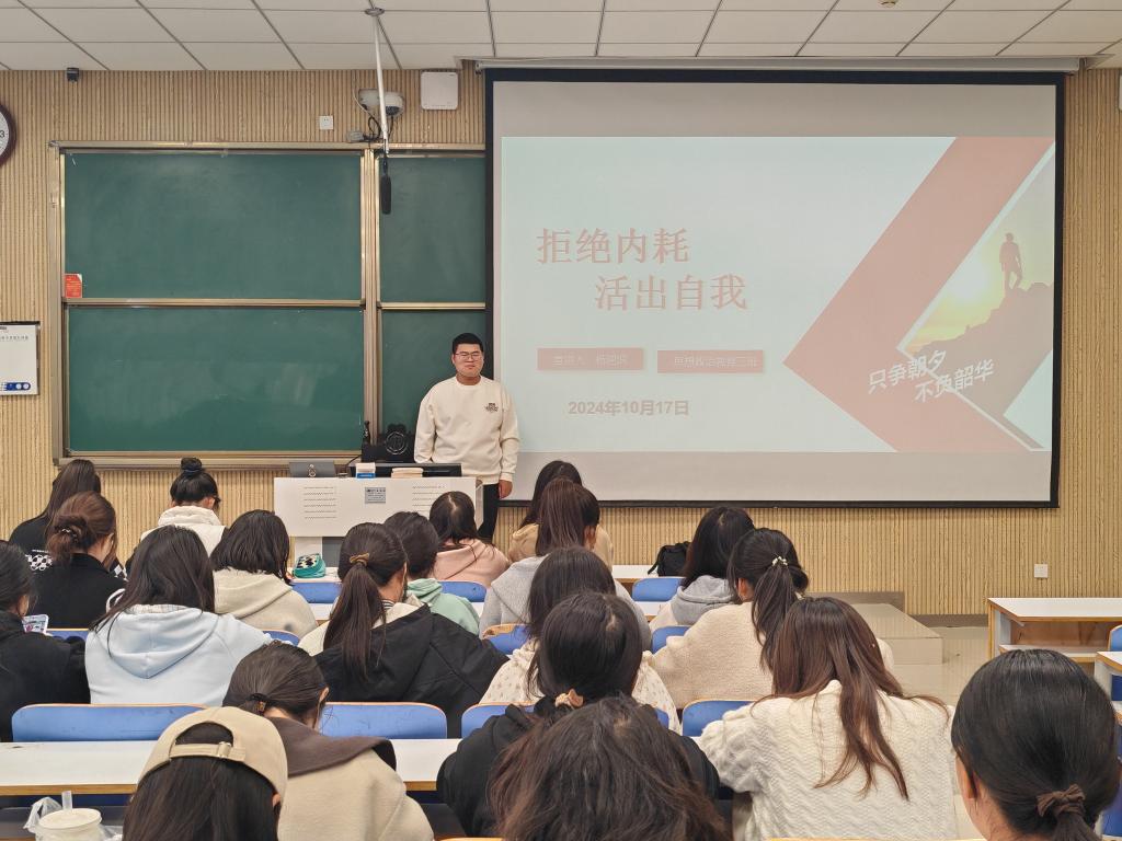 为了帮助同学们认识到内耗的危害,积极面对生活中的挑战。beat365在线唯一官网思想政治教育三班于10月17日下午成功举办了一场以“拒绝内耗,活出自我”为主题的班会活动。班会由杨迎滨主持。