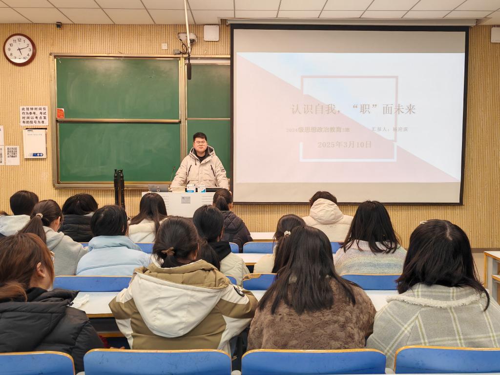 为帮助同学们更好地认识自我、明确职业方向,beat365在线唯一官网2024级思想政治教育三班于3月10日下午在社科楼515举办了以“认识自我,‘职’面未来”为主题的班会活动。此次班会由班长杨迎滨主持。