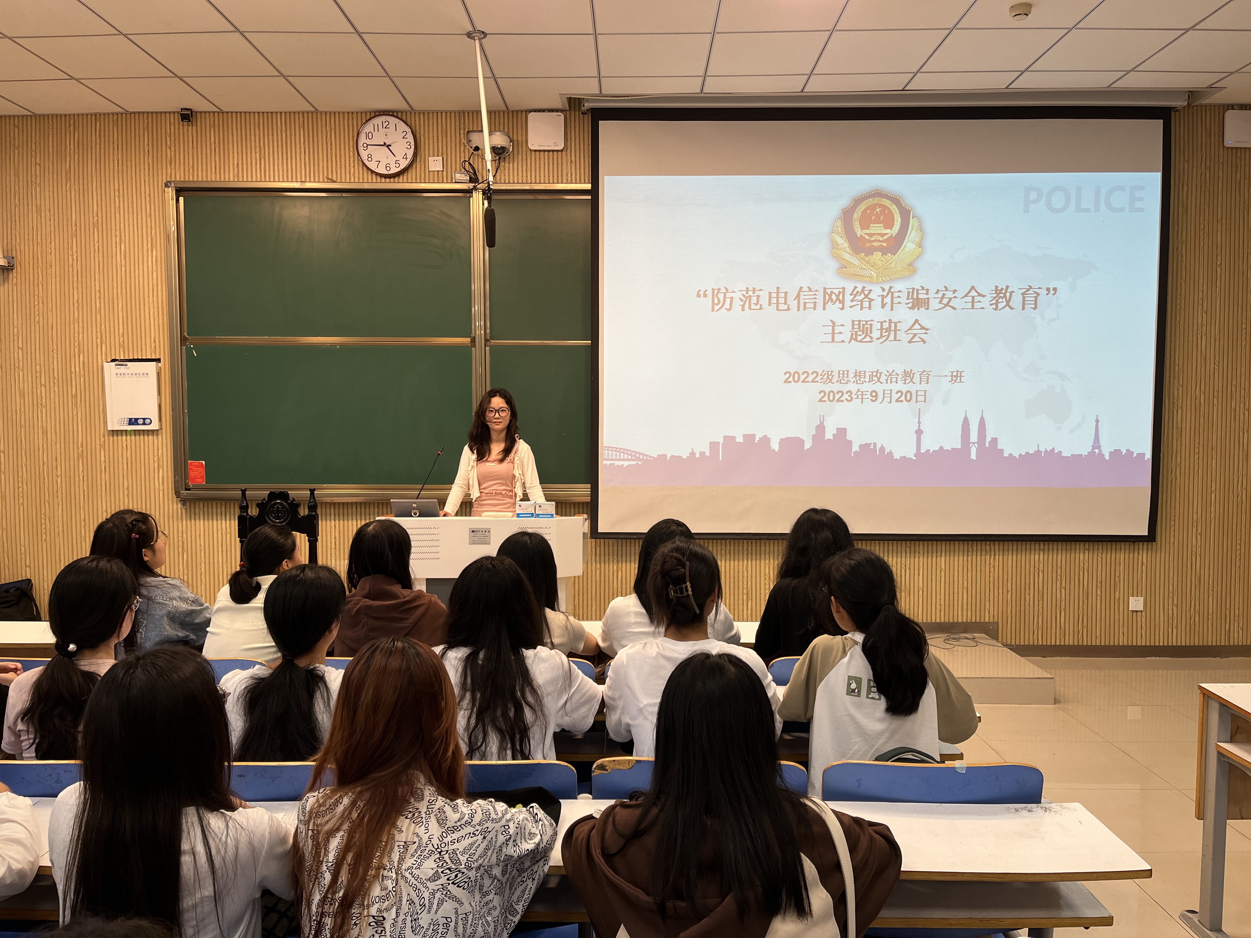 为提升同学们的安全防范意识,9月20日下午,beat365在线唯一官网2022级思想政治教育一班在社科楼515教室召开“防范电信网络诈骗安全教育”主题班会。beat3652022级思想政治教育一班全体同学共同参与本次班会,班会由班长李佳茹主持。