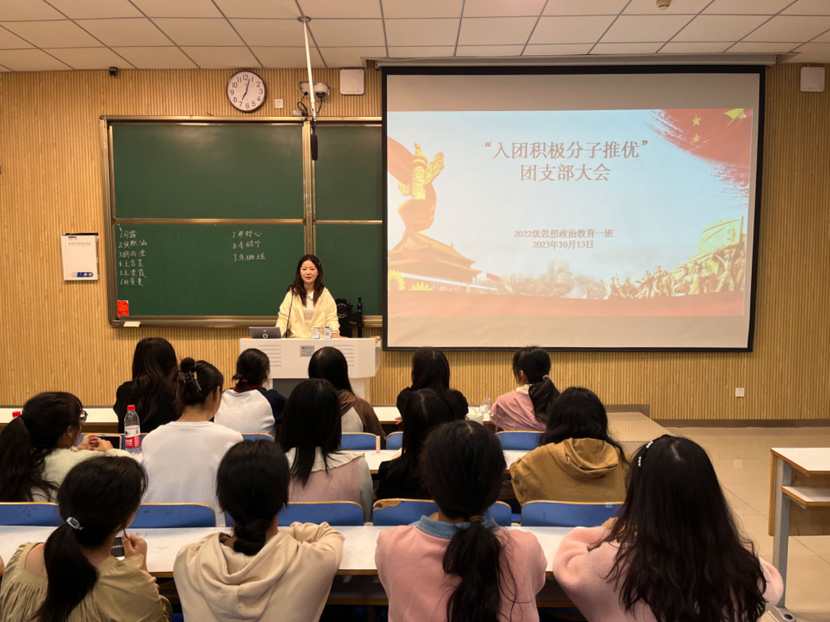为加强学院共青团队伍建设,10月13日下午,beat365在线唯一官网2022级思想政治教育一班在社科楼515教室召开“入团积极分子推优”团支部大会。beat3652022级思想政治教育一班全体同学共同参与本次会议,会议由团支书李佳茹主持。