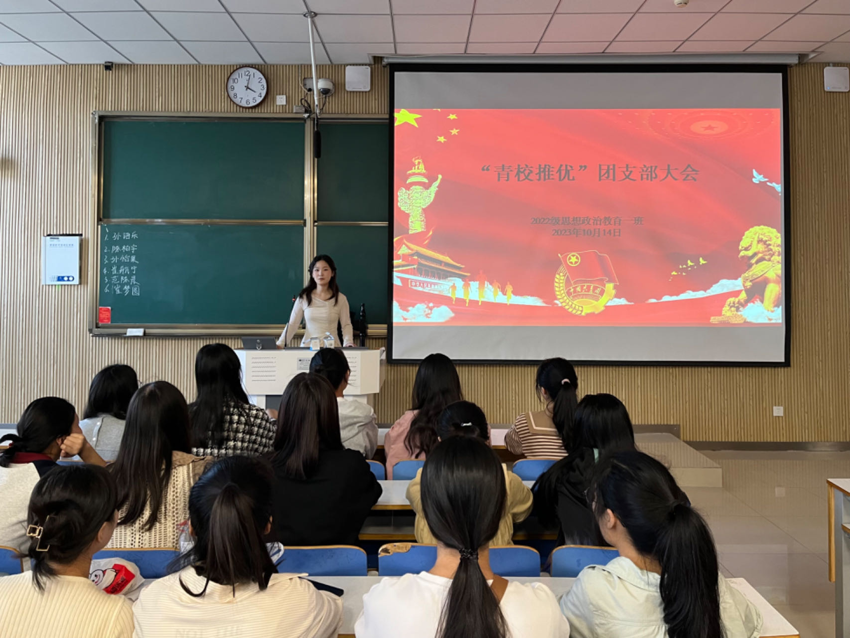为充实党的新生力量,激发团员的政治热情,10月14下午,beat365在线唯一官网2022级思想政治教育一班在社科楼515教室召开“青校推优”团支部大会。beat365在线唯一官网2022级思想政治教育一班全体团员共同参与本次会议,会议由团支书李佳茹主持。